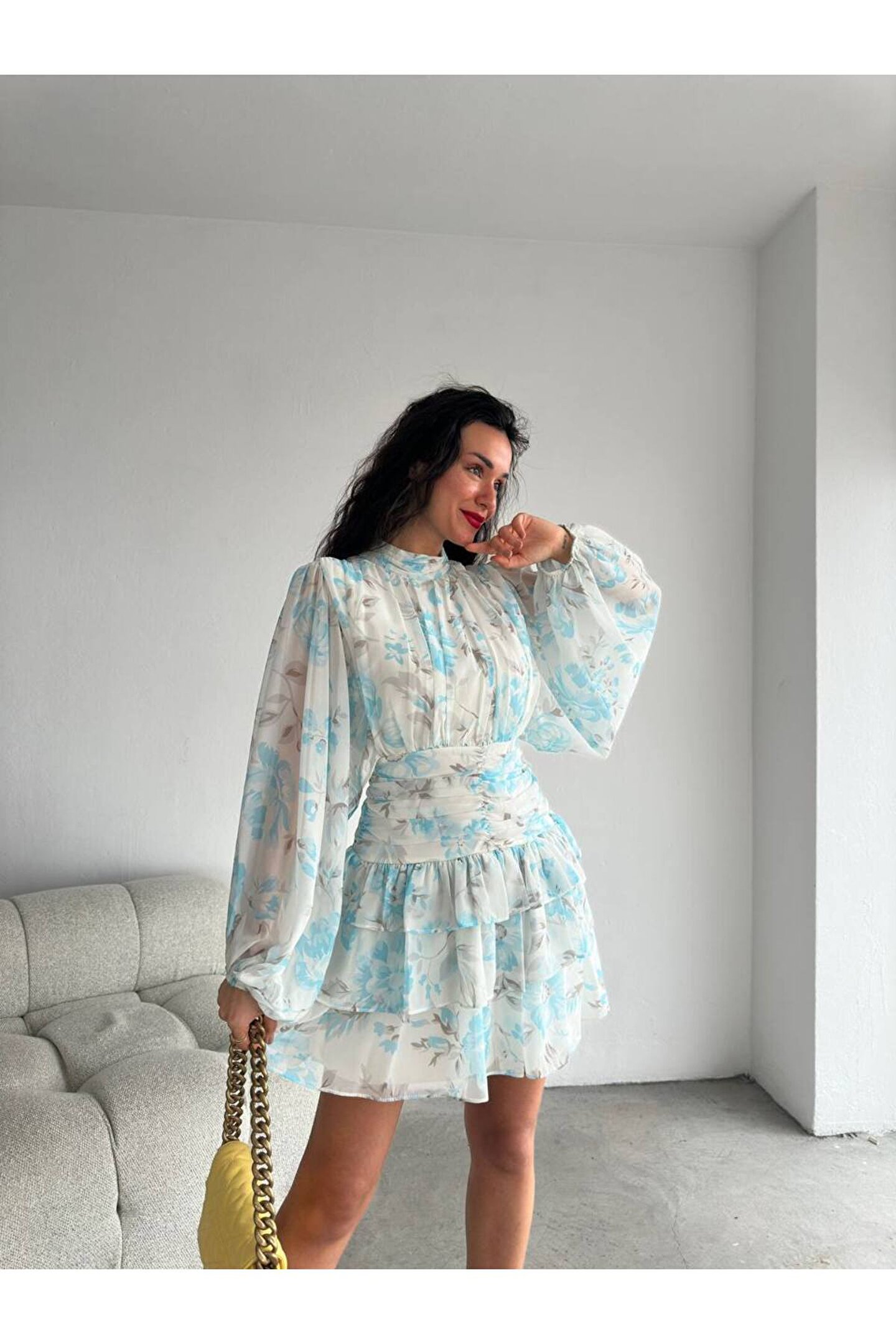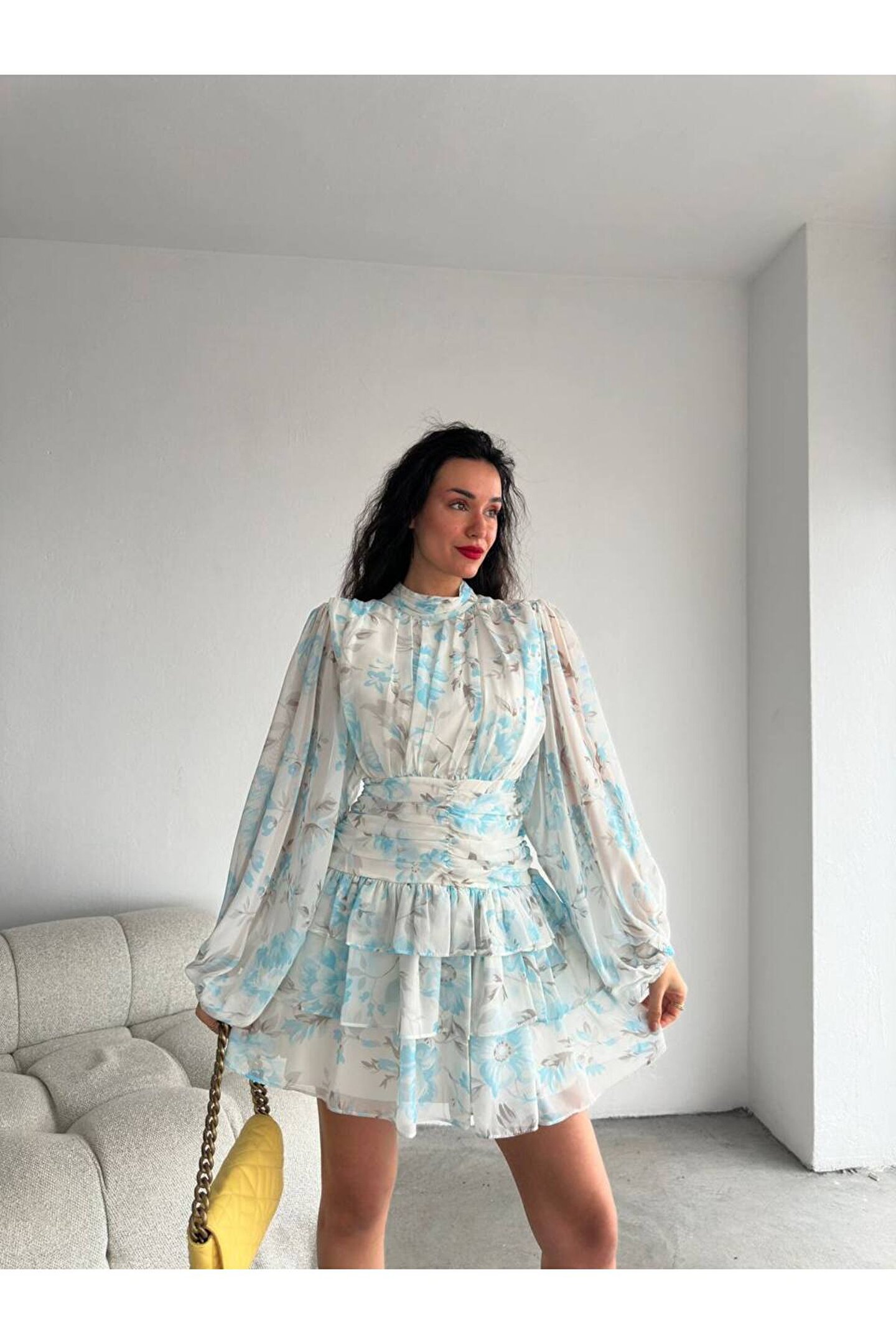 - Zarif dik yakası ve şık desenleriyle dikkat çeken bu mini şifon elbise, özel günlerinizde göz alıcı bir görünüm sunar; - Polyester materyal kullanımı sayesinde uzun ömürlü ve dayanıklı bir yapıya sahip olup, kolay bakım imkanı sağlar; - Design koleksiyonuna ait bu elbise, modern ve trend tasarımlarıyla her gardıropta yerini almayı hak eder; - Uzun kollu ve slim kalıbı ile vücut hatlarınıza mükemmel uyum sağlayarak feminen bir siluet oluşturur; - Şifon dokuma tipi, hafif ve nefes alabilen yapısıyla konforlu bir kullanım sunarken, baskılı deseniyle stilinizi öne çıkarır; - Astarlı yapısı sayesinde rahatlıkla tercih edebileceğiniz bu elbise, tüm yaş gruplarına hitap eden geniş bir kullanıcı kitlesine sahiptir; - Şık ve gece ortamları için ideal olan bu elbise, dantel detaylarıyla zarafeti ve sofistike bir dokunuşu beraberinde getirir;