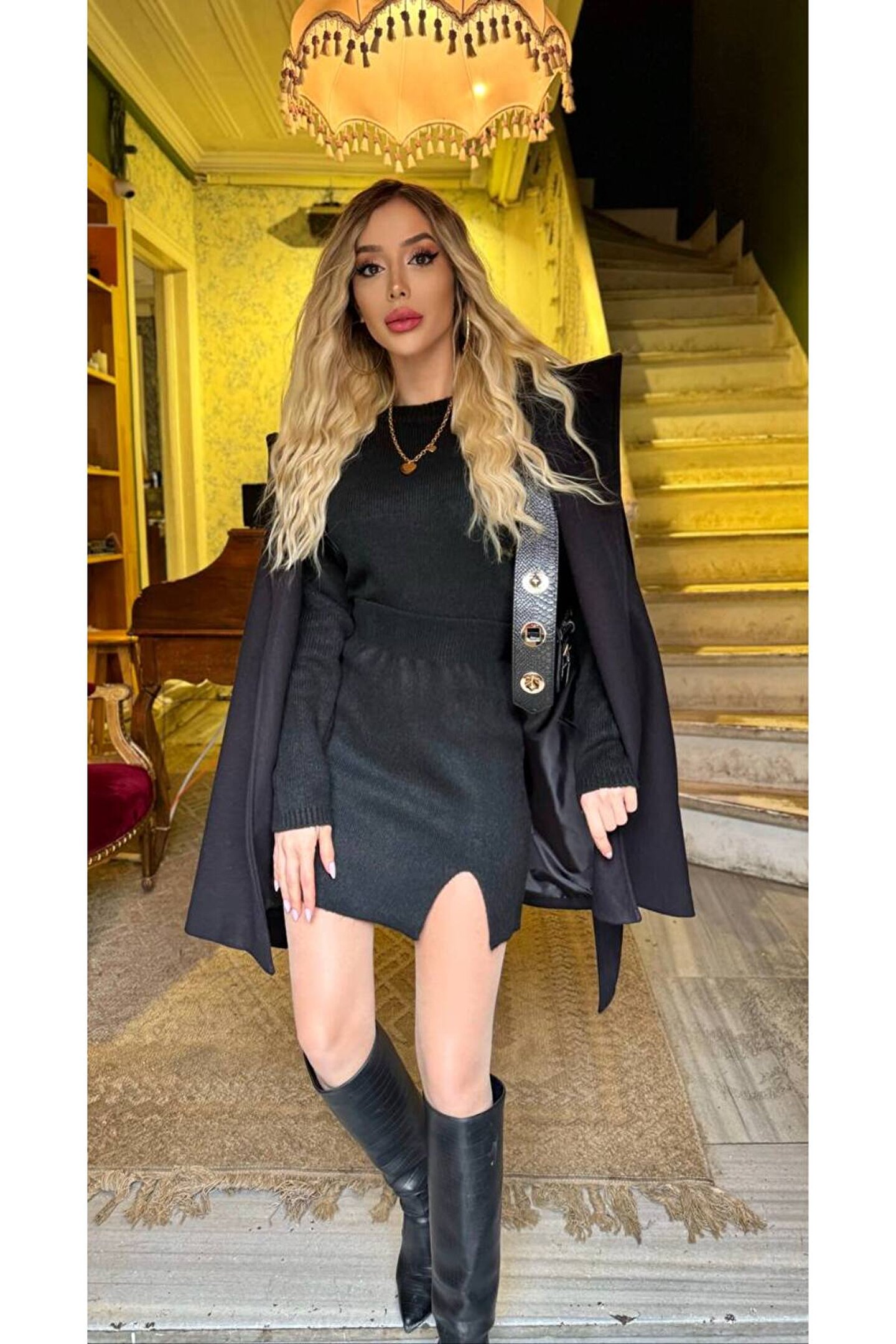 Dolu İğne Triko Etekli Takım, her yaştan kadının gardrobunda yer alması gereken zarif bir parça; Slim kesimi ile modern ve şık bir görünüm sunarken, yırtmaç detayı feminen çizgilere vurgu yapar; Düz renk seçenekleri ve triko kumaşı sayesinde kolayca kombinleyebileceğiniz bu takım, günlük kullanımda rahatlık ve stilin mükemmel dengesini sağlar; Her yaştan genç kadının tercih edebileceği bu takım, kısa boy eteği ile gün boyu rahat hareket etme imkanı tanırken, düz deseniyle zamansız bir şıklık sunar; ;;
