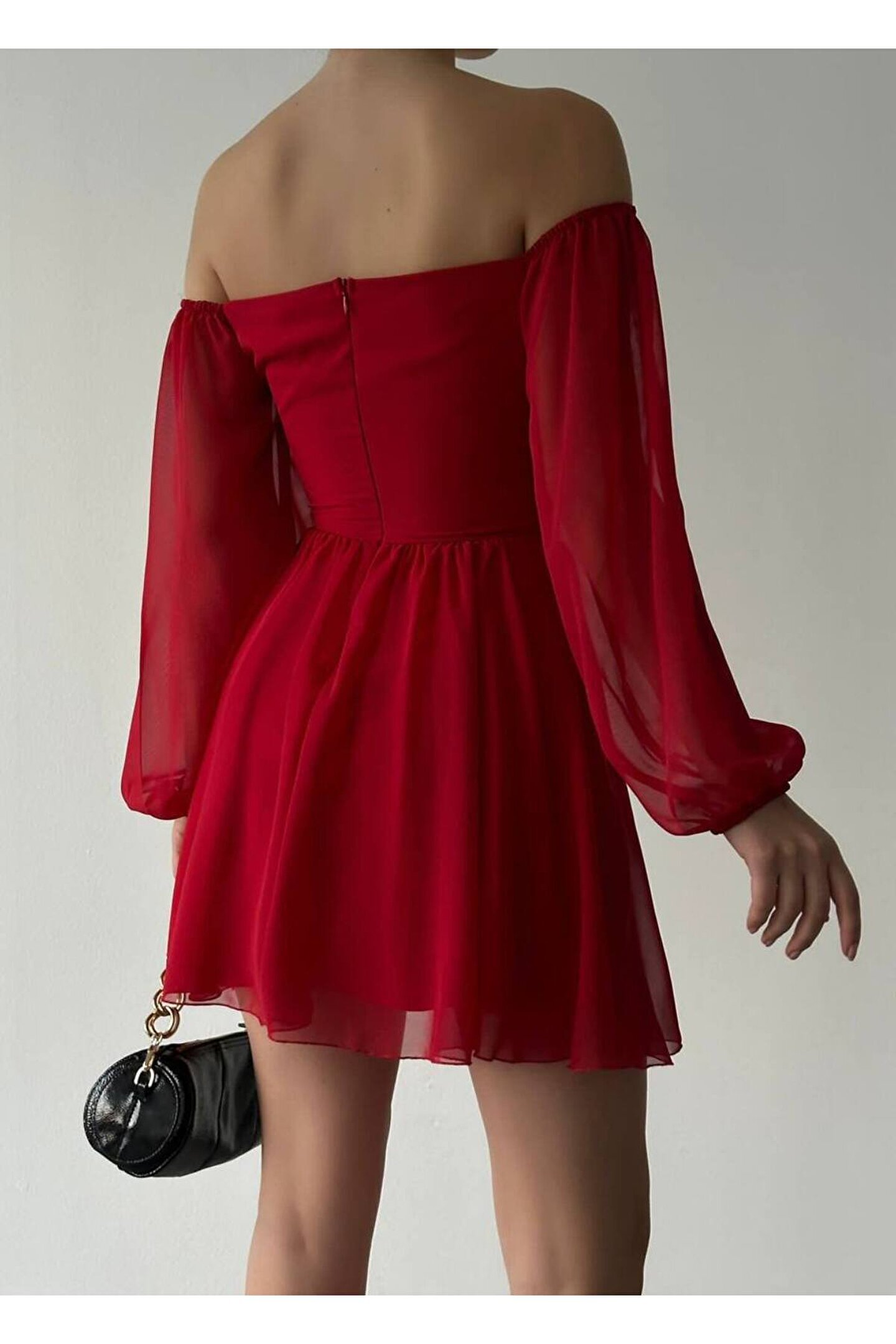 Zarif düğme detaylarıyla süslenmiş mini şifon elbise, günlük kullanımdan özel davetlere kadar her ortamda şıklığınızı konuşturmanızı sağlar.; Basic koleksiyonunun sadeliğiyle öne çıkan bu elbise, zamansız tasarımıyla tüm yaş gruplarına hitap eder.; Carmen yaka detayı ile feminen bir duruş sergileyen bu elbise, uzun kolları sayesinde mevsim geçişlerinde ideal bir tercih olabilir.; Şifon dokusuyla hafif ve nefes alabilen yapısı, gün boyu konforunuzdan ödün vermeden stilinizi korumanızı sağlar.; Astarlı yapısıyla rahatlık sunan bu elbisenin slim kalıbı, vücut hatlarınızı zarifçe sararak feminen siluetinizi ön plana çıkarır.; Dantel detaylarıyla zenginleştirilmiş düz tasarımı ile sade güzelliğin simgesi olan bu elbise, her tür aksesuarla kolayca kombinlenebilir.;