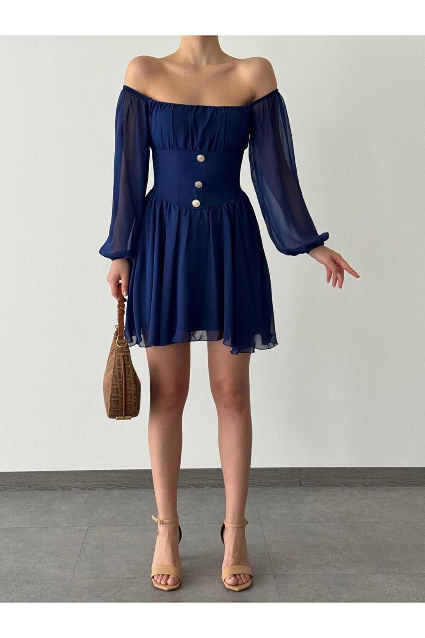 Bu şık mini şifon elbise, düğme detaylarıyla zarif bir görünüm sunar; Astarlı yapısı konforlu bir kullanım sağlar ve uzun kolları ile mevsim geçişlerine uyum sağlar; Slim kalıbı sayesinde vücut hatlarını nazikçe sararak feminen bir siluet oluşturur; Dantel detayları ile zenginleştirilmiş kumaşı, sofistike bir dokunuş katarken tüm yaş gruplarına hitap eden düz tasarımıyla her ortamda rahatlıkla tercih edilebilir; Basic koleksiyonunun parçası olan bu elbise, günlük kullanım için idealdir; Carmen yaka tasarımı ise boynunuzu zarifçe ortaya çıkarır ve düz deseniyle sade şıklığı ön plana çıkartır; ;;