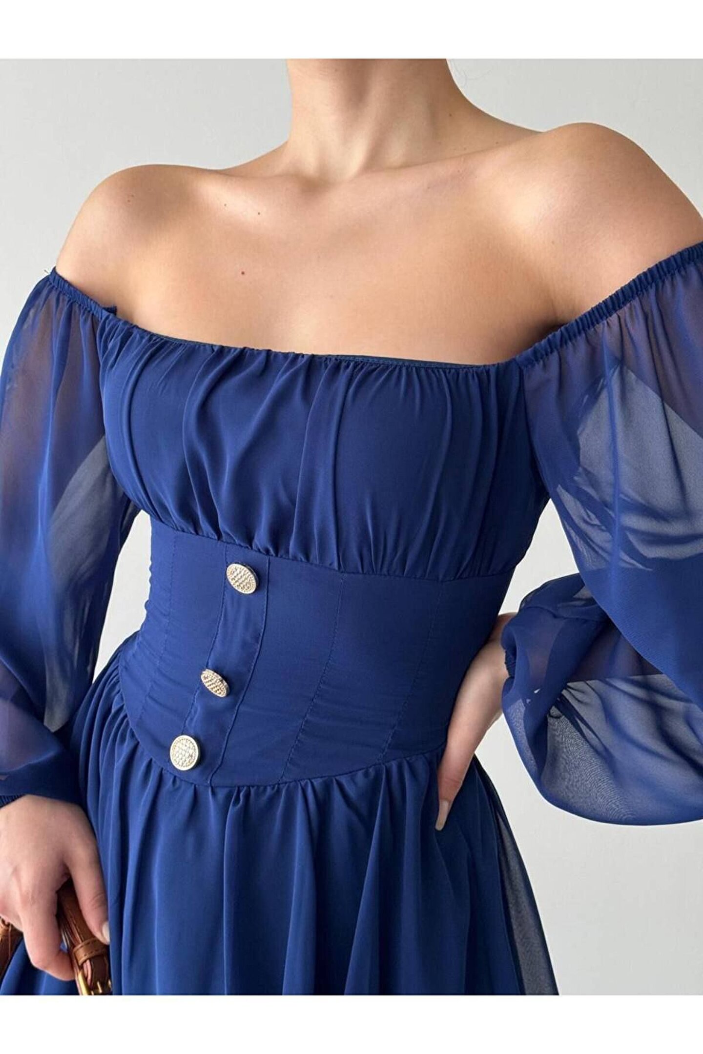 Bu şık mini şifon elbise, düğme detaylarıyla zarif bir görünüm sunar; Astarlı yapısı konforlu bir kullanım sağlar ve uzun kolları ile mevsim geçişlerine uyum sağlar; Slim kalıbı sayesinde vücut hatlarını nazikçe sararak feminen bir siluet oluşturur; Dantel detayları ile zenginleştirilmiş kumaşı, sofistike bir dokunuş katarken tüm yaş gruplarına hitap eden düz tasarımıyla her ortamda rahatlıkla tercih edilebilir; Basic koleksiyonunun parçası olan bu elbise, günlük kullanım için idealdir; Carmen yaka tasarımı ise boynunuzu zarifçe ortaya çıkarır ve düz deseniyle sade şıklığı ön plana çıkartır; ;;