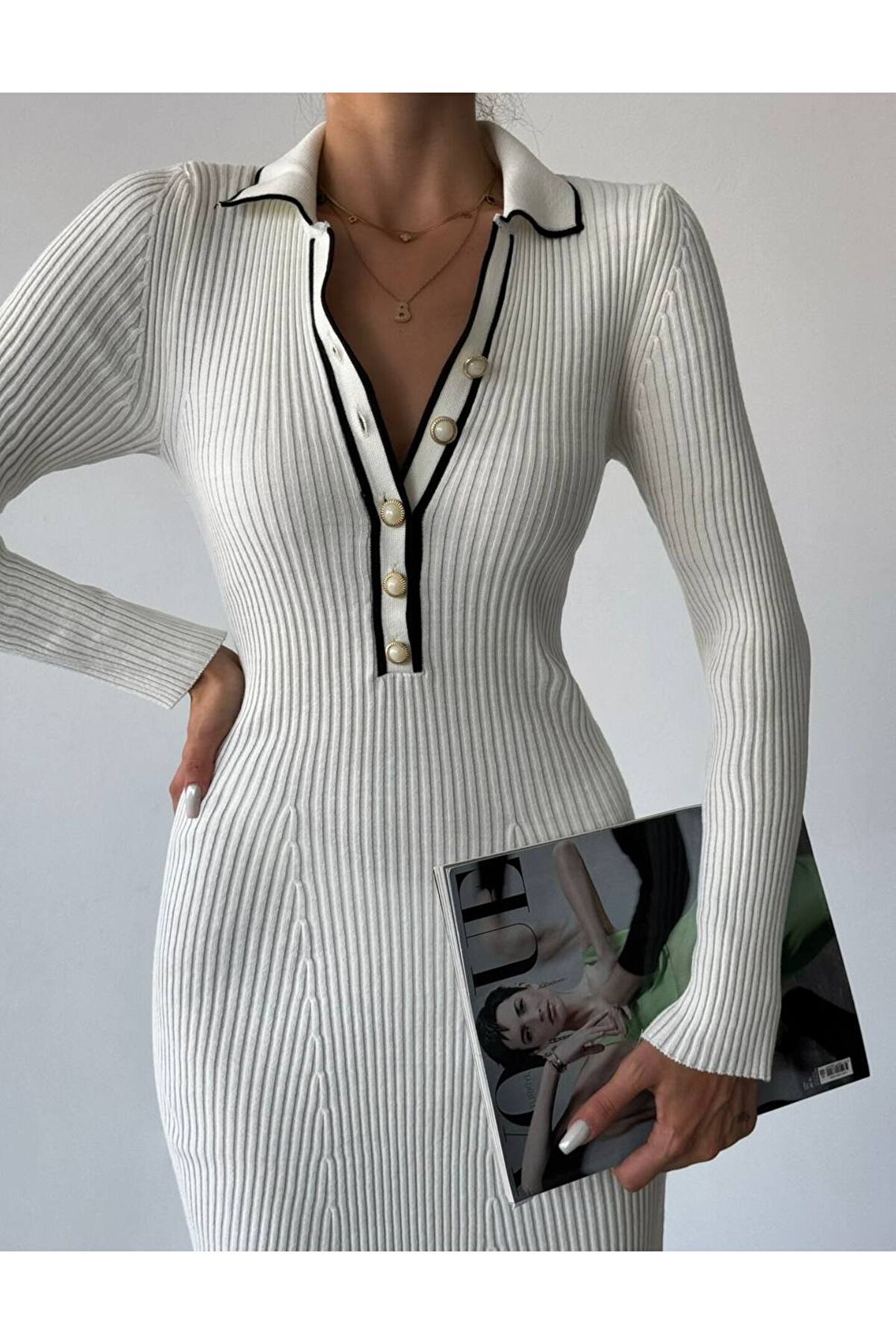Modern ve şık tasarımıyla dikkat çeken düğme detaylı triko elbise, her yaştan kadının gardrobunda yerini alacak zarif bir parça.; Slim kesimiyle vücut hatlarınızı mükemmel şekilde sararak feminen bir siluet sunar.; Uzun boyu ile hem günlük kullanımda hem de özel etkinliklerinizde rahatlıkla tercih edebileceğiniz ideal uzunluktadır.; Düğme detayları ile sofistike bir görünüm kazandırılan bu triko elbise, kombinlerinizde kolayca öne çıkmanızı sağlar.; Yumuşak triko materyali sayesinde konforlu bir kullanım sunarken, dayanıklılığıyla da uzun süreli kullanım vaat eder.; Tüm yaş gruplarına hitap eden tasarım anlayışıyla herkesin gardrobunda yerini alabilecek çok yönlülükte bir parça.; Düz kesimi sayesinde kolayca kombinleyebileceğiniz bu elbise, gençlerin enerjisini yansıtan dinamik tarza sahiptir.;
