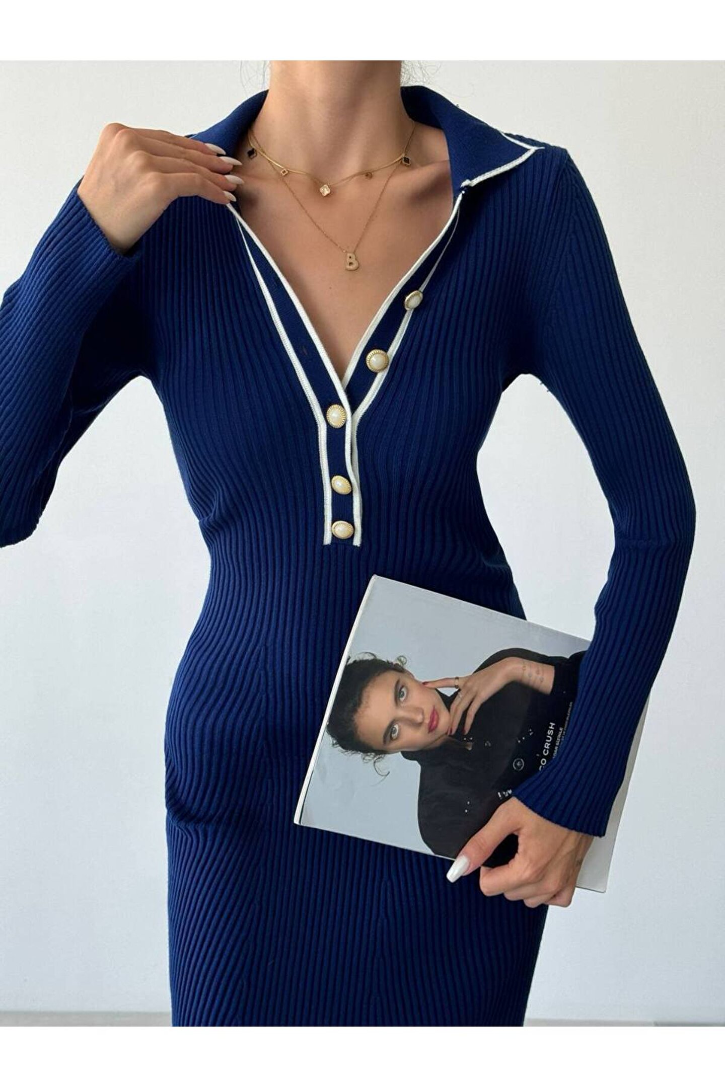 Yumuşak dokusuyla öne çıkan triko kumaştan üretilmiştir, bu sayede gün boyu rahatlık sağlar.; Sade ve şık tasarımıyla dikkat çeken düz kesimi, her türlü kombininize kolayca uyum sağlar.; Düğme detaylarıyla zenginleştirilmiş bu elbise, zarif görünümüyle dikkat çekici bir stil oluşturmanızı sağlar.; Uzun boy kesimi sayesinde hem modern hem de zamansız bir görünüm sunar.; Slim kalıbı vücut hatlarını nazikçe sararak feminen bir siluet oluşturur.; Gençlerin enerjisini yansıtan bu elbise, tüm yaş gruplarına hitap eden dinamik tarzı ile öne çıkar.;