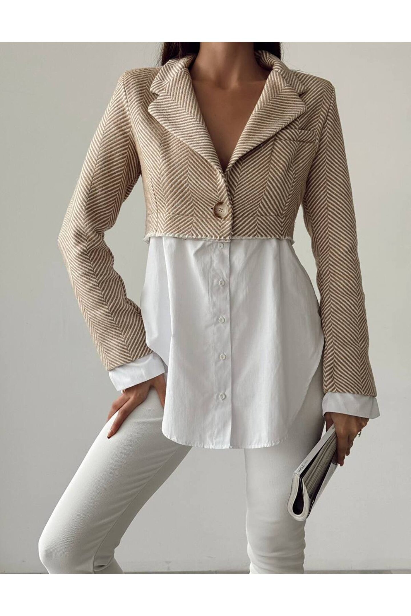Rahat ve şık tasarımıyla her yaştan kadının gardırobunun vazgeçilmezi olacak regular boy gömlek detaylı crop ceket, örme kumaşı sayesinde konforlu bir kullanım sunar.; Her mevsim tercih edilebilecek bu ceket, tüm yaş gruplarına hitap eden geniş beden skalasıyla herkesin zevkine göre özelleştirilebilir.; Regular kalıbıyla vücut hatlarını saran ancak sıkmayan yapıda olan bu ceket, günlük kullanımda rahat hareket etme özgürlüğü sağlar.; Gömlek detaylı tasarımıyla modern ve trend bir görünüm kazandırırken, crop kesimiyle de feminen çizgileri ön plana çıkarır.;