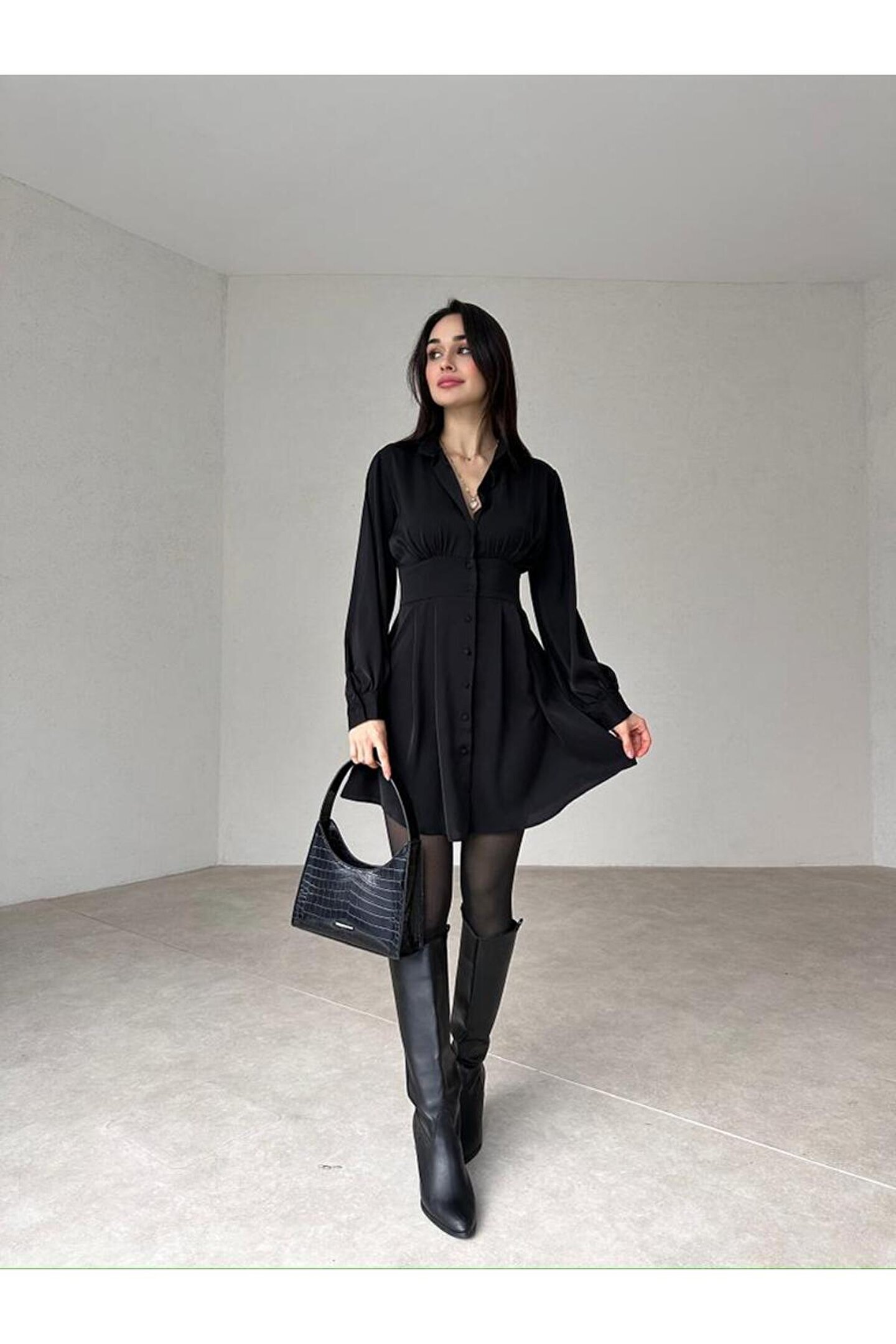 Mini boy kesimi ile modern ve şık bir görünüm sunar, tüm yaş gruplarına hitap eder; Slim kalıbı sayesinde vücut hatlarınıza mükemmel uyum sağlar ve zarif bir siluet oluşturur; Dokuma kumaş yapısı, dayanıklılığı ve konforu bir arada sunarak uzun süreli kullanım imkanı tanır; Şık ve gece ortamları için ideal olan bu elbise, özel davetlerde göz alıcı bir tercih olur; Düz tasarımıyla sadelikten yana olanların beğenisine sunulurken, gömlek formlu detaylarıyla modern bir dokunuş katmaktadır;