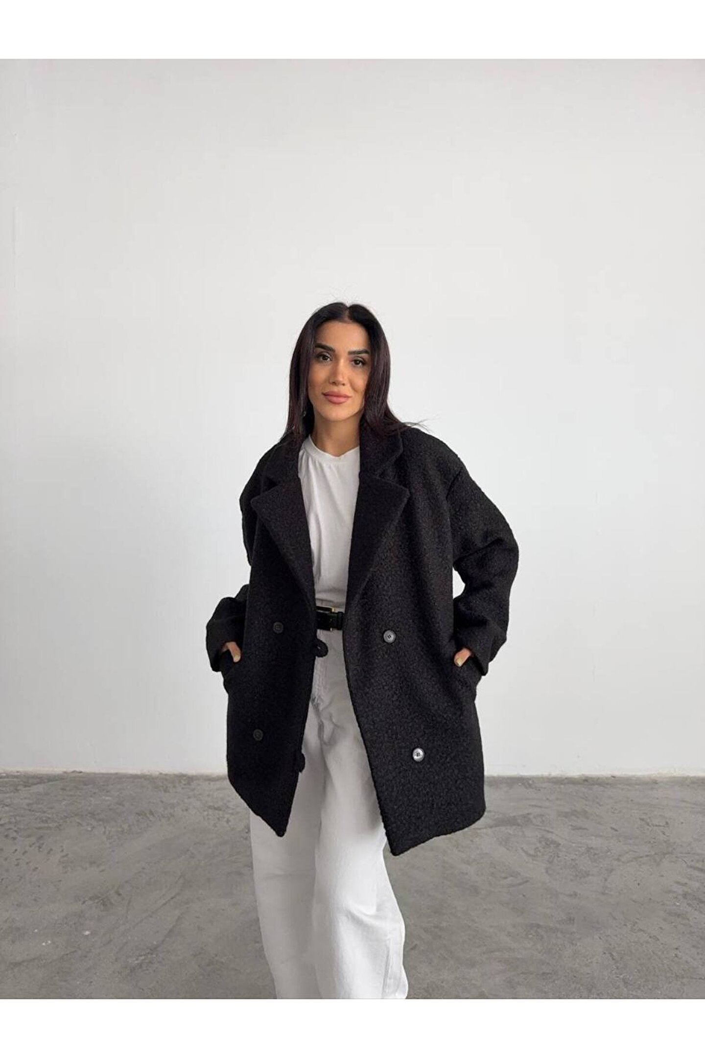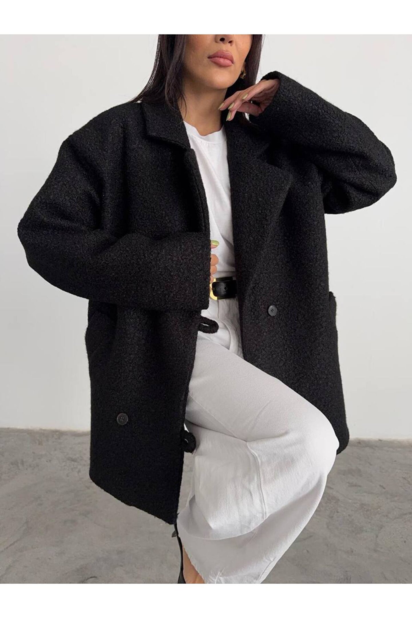 popibutik Kadın Buklet Kumaş Kısa Kaban