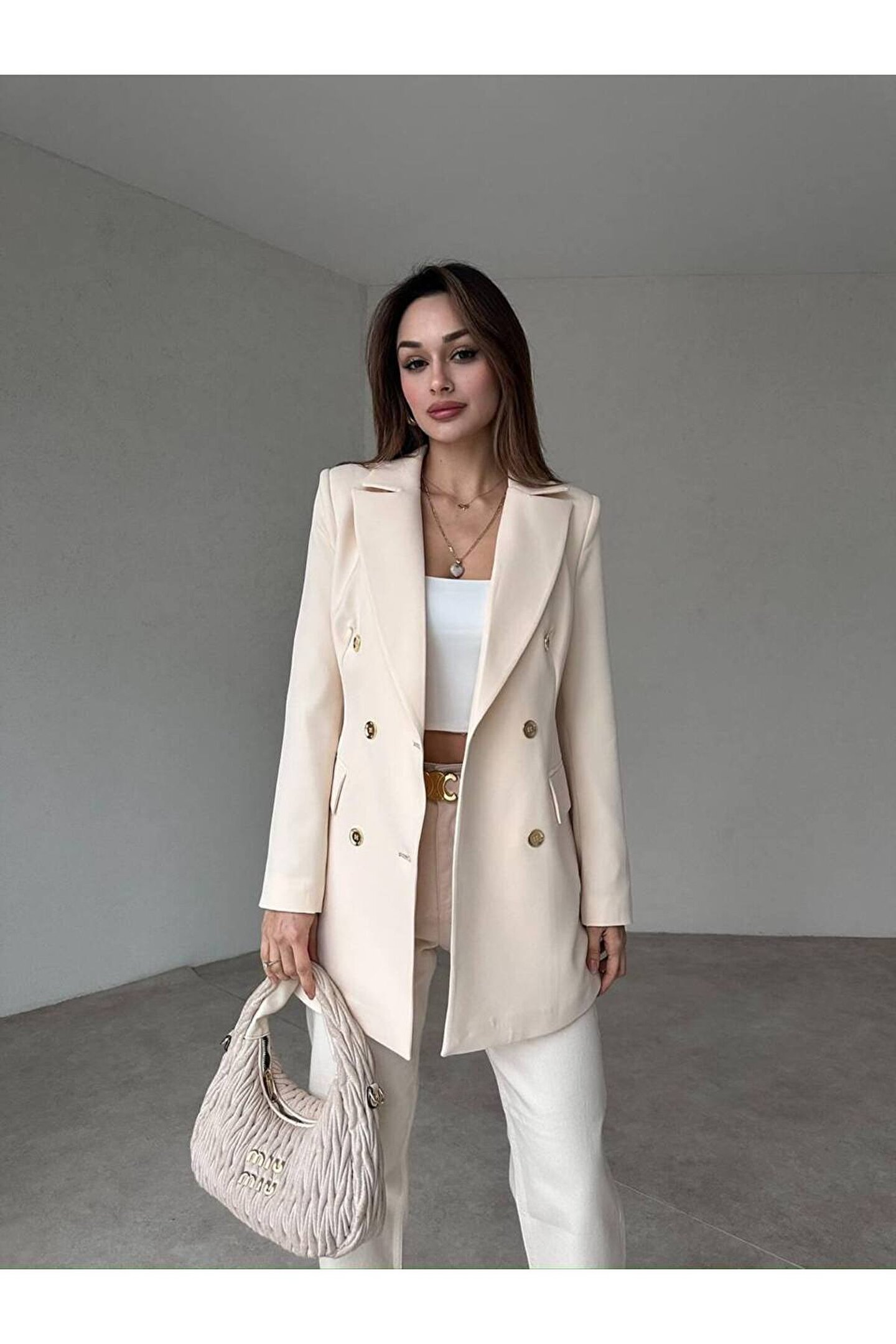 popibutik Kadın Çift Düğme Atlas Kumaş Ceket