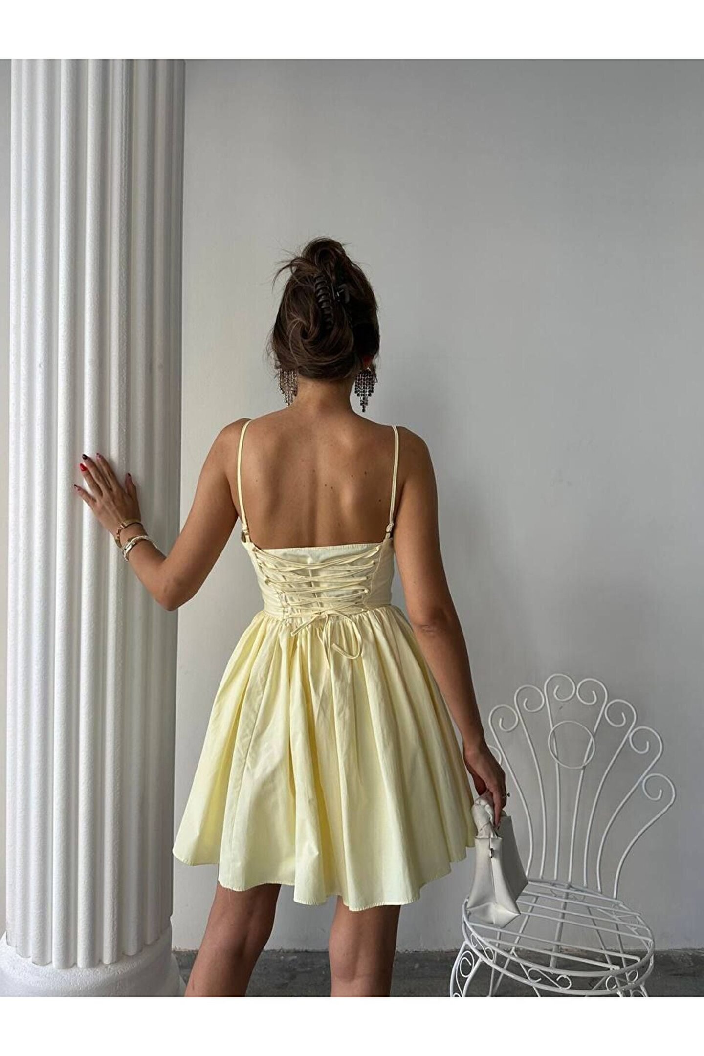 popibutik Kadın Göğüs Fiyonk Detaylı Korse Formlu Mini Elbise