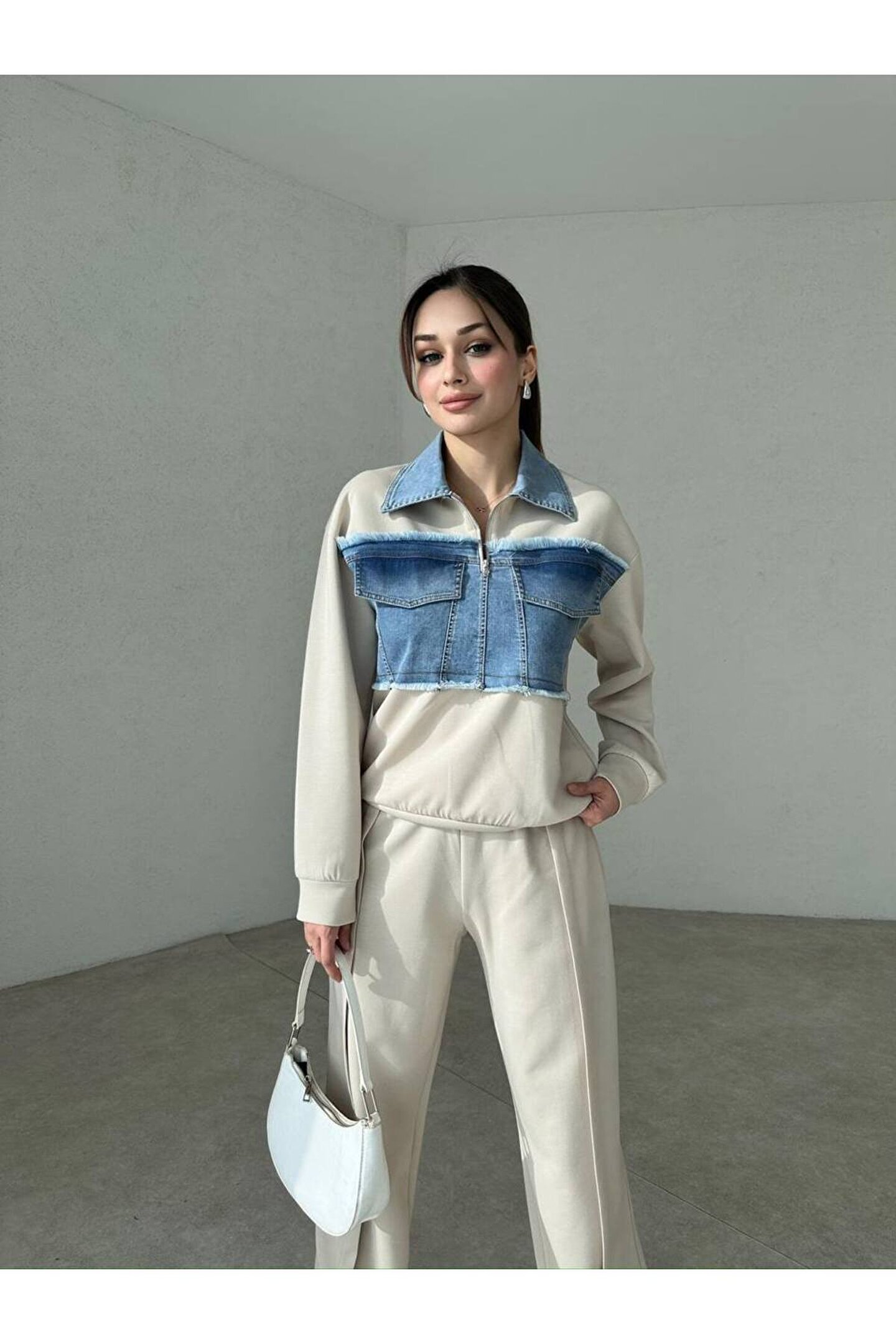 • Takım jean garnili modal kumaştır.