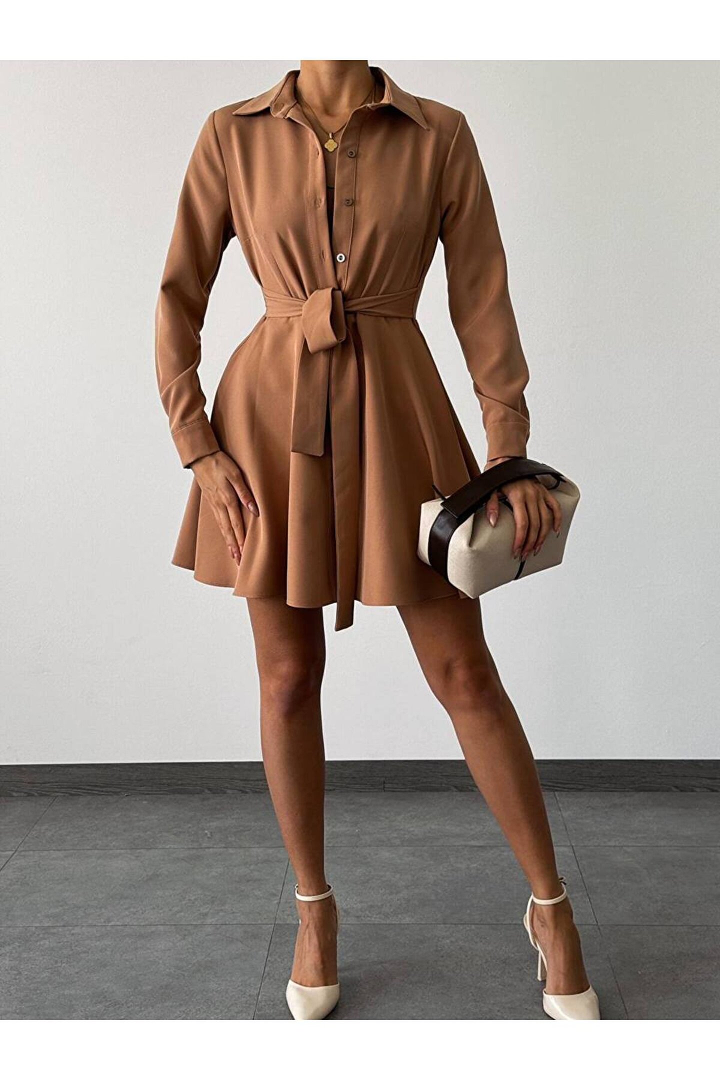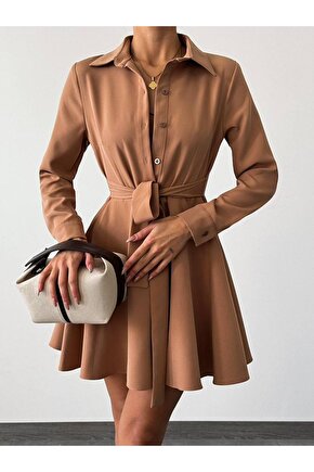 - Her yaş grubuna hitap eden, genç ve şık tasarımıyla dikkat çeken mini gömlek elbise.; - Mevsim sınırlaması olmayan, tüm sezonlarda rahatlıkla tercih edilebilecek klasik bir parça.; - Mini boy kesimiyle modern ve dinamik bir görünüm sunar.; - Türk menşeli kumaşı sayesinde yerel üretim kalitesini yansıtır.; - Regular kalıp ile vücut hatlarınıza uyum sağlayarak konforlu bir kullanım sunar.; - Uzun kollu tasarım, serin havalarda ekstra koruma ve şıklık katmak için idealdir.; - Sade ve düz deseniyle zamansız bir tarz oluştururken, her türlü aksesuarla kolayca kombinlenebilir.; - Gömlek yakası detayı ile sofistike bir dokunuş ekler; resmiyetten uzak ama zarif bir stil arayanların tercihi olur.; - Şık ve gece ortamları için mükemmel seçim olan bu elbise, özel davetlerde göz alıcı bir izlenim bırakmanızda yardımcı olur.; - Yüksek kaliteli krep materyali sayesinde dayanıklılık ve konforu bir arada sunarken, uzun süreli kullanım vaat eder.