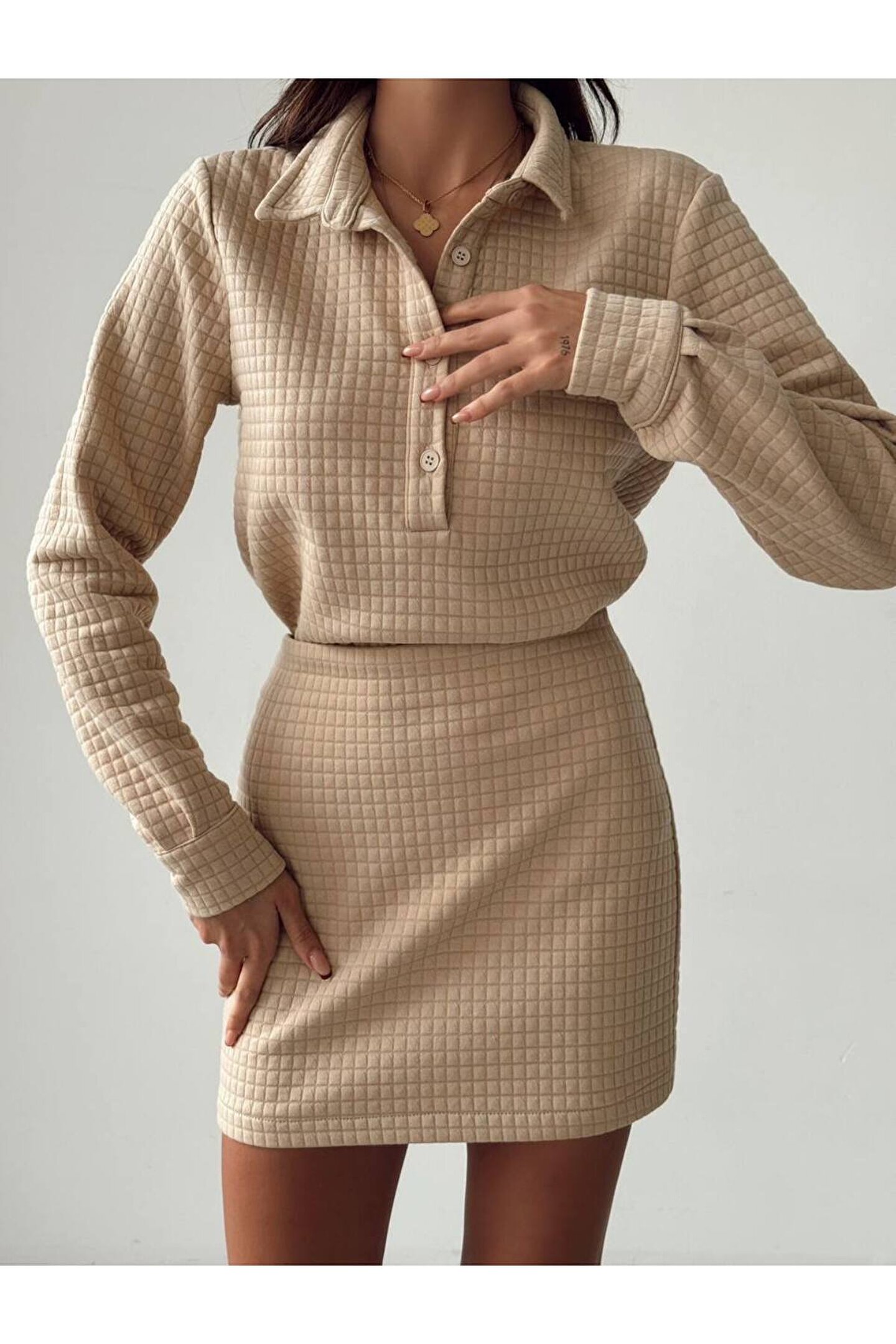 Bu kapitone kumaştan yapılmış alt; üst takım, gençler için tasarlanmış olup trend bir görünüm sunar; Slim fit kesimi ile vücut hatlarınıza mükemmel uyum sağlar ve şık bir siluet oluşturur; Kısa boy etek ve bluz kombinasyonu, farklı ortamlara kolayca adapte olmanızı sağlar; Çizgili deseniyle canlı ve dinamik bir tarz yaratırken, standart kol tasarımı günlük kullanım için idealdir; Örme kumaşı sayesinde yumuşak dokunuşuyla konforlu bir deneyim sunar ve tüm yaş gruplarına hitap eder; ;;