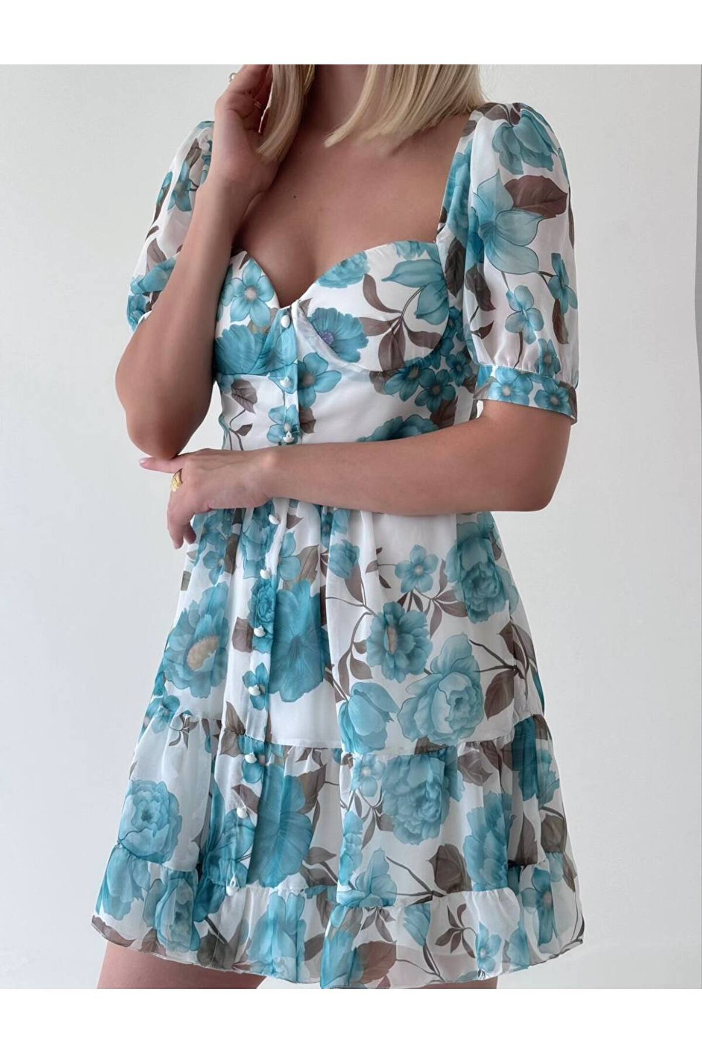 Zarif düğme detayları ile süslenmiş, şık ve modern bir görünüm sunar; Kısa kollu tasarımı sayesinde rahat hareket etme özgürlüğü sağlar; Hafif ve nefes alabilen şifon kumaşı, yaz aylarında serinlik ve konfor sunar; Mini boyu ile feminen ve dinamik bir stil yaratır; Belirtilmemiş kumaş tipi, esneklik ve rahatlık için idealdir; Bele oturan kalıbı sayesinde vücut hatlarını zarifçe sarar ve şık bir siluet oluşturur; Genç yaş grubuna hitap eden tasarımıyla enerjik ve canlı kombinler için uygundur; Şifon materyali, hafifliği ve zarafetiyle dikkat çekerken, kolay bakım imkanı sunar;