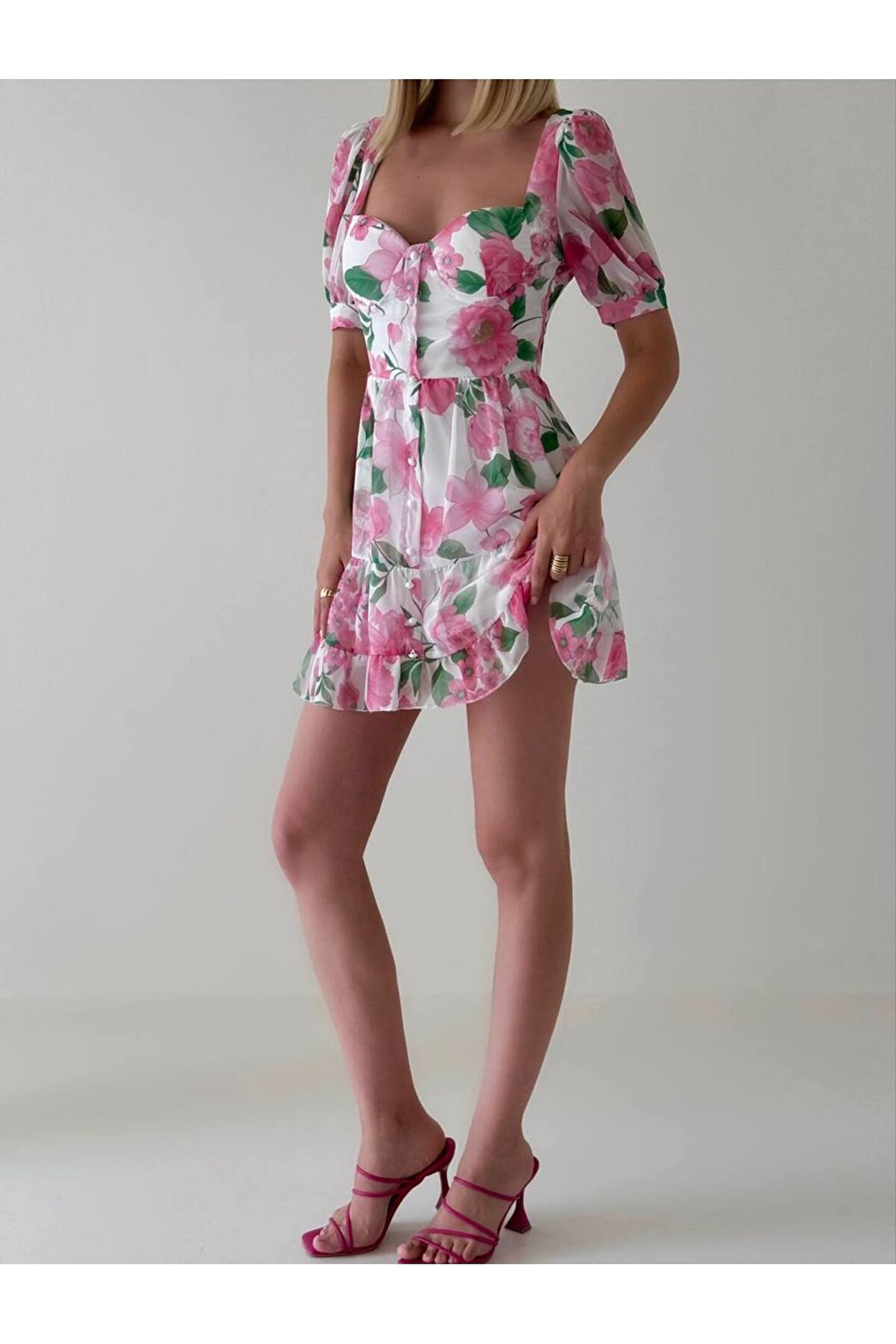 Kısa kollu tasarımı ile yaz aylarında serin ve rahat bir kullanım sunar; Hafif ve nefes alabilen şifon kumaşı, gün boyu konforlu bir deneyim sağlar; Mini boyu ile modern ve şık bir görünüm kazandırırken, hareket özgürlüğü sunar; Bele oturan kalıbı sayesinde vücut hatlarını zarifçe sararak feminen bir siluet oluşturur; Düğme detayları ile hem şıklığı hem de pratikliği bir arada sunarak günlük kullanım için idealdir; Genç yaş grubuna hitap eden dinamik ve canlı renk seçeneğiyle enerjik kombinler yaratmanızı sağlar;