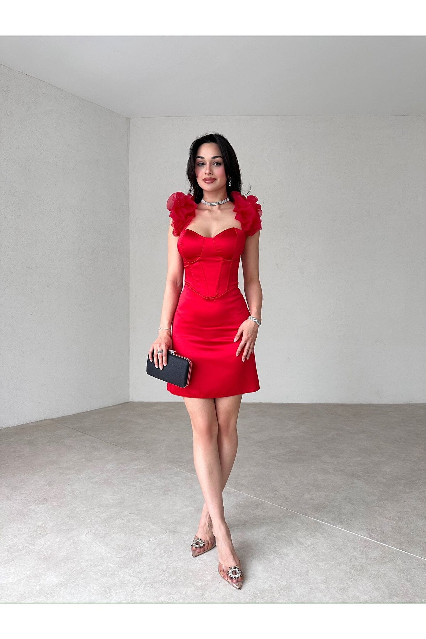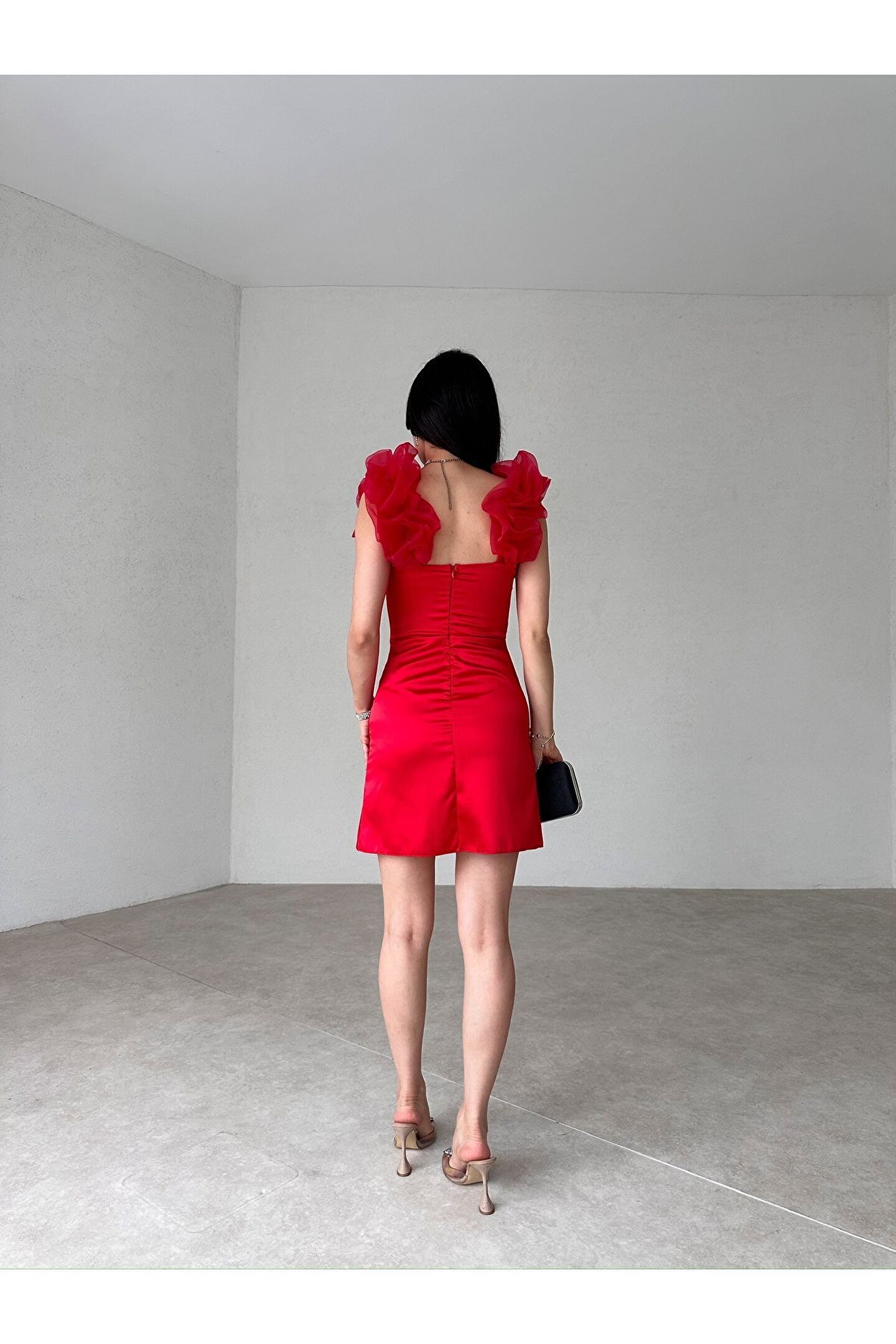 Genç ve tüm yaş gruplarına hitap eden, şık ve zarif tasarımıyla dikkat çeken mini kırmızı saten elbise; Düz kesimi ve slim kalıbı ile vücut hatlarınıza mükemmel uyum sağlayarak feminen bir siluet sunar; Dantel dokuma tipi, elbisenin zarif görünümünü artırırken, aynı zamanda sofistike bir hava katar; Ayarlanabilir kol korse detayı sayesinde farklı kol uzunluklarına kolayca uyum sağlar ve kişisel konforunuzu artırır; Mini boyu ile modern ve dinamik bir görünüm sunarken, şık ortamlarda göz alıcı bir stil oluşturmanızı sağlar;