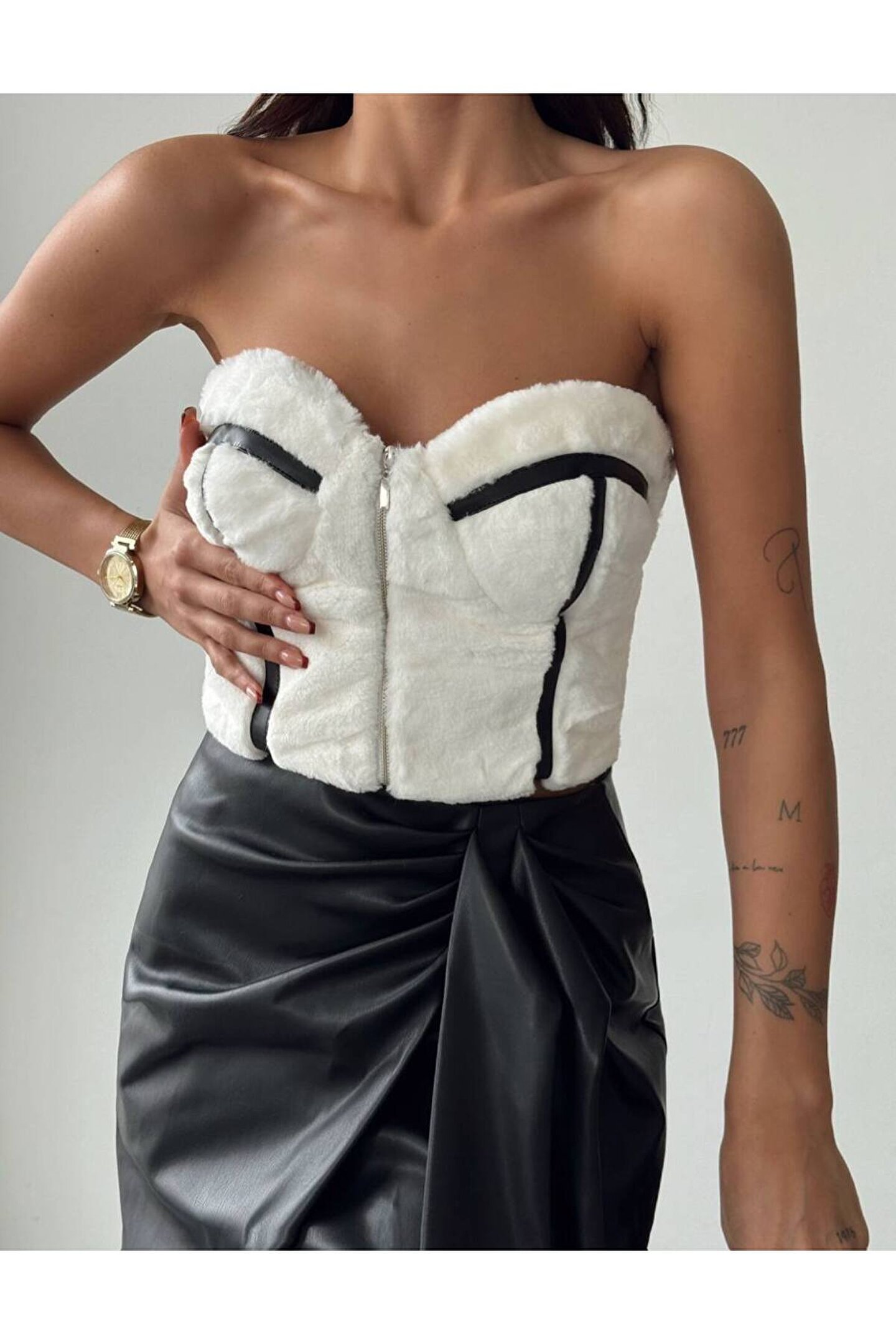 Bu şık ve modern alt; üst takım, her yaştan kadının gardırobunda yer almayı hak eden bir parçadır; Slim kesimi ile vücut hatlarınıza mükemmel uyum sağlayarak feminen bir siluet çizer; Crop deri eteğin üzerindeki düz desen, zamansız bir şıklık katarken, örme kumaş tipi konforlu bir kullanım sunar; Gençlerin enerjisini yansıtan bu takım, günlük kombinlerinizde dinamik ve modern bir görünüm elde etmenizi sağlar; ;;