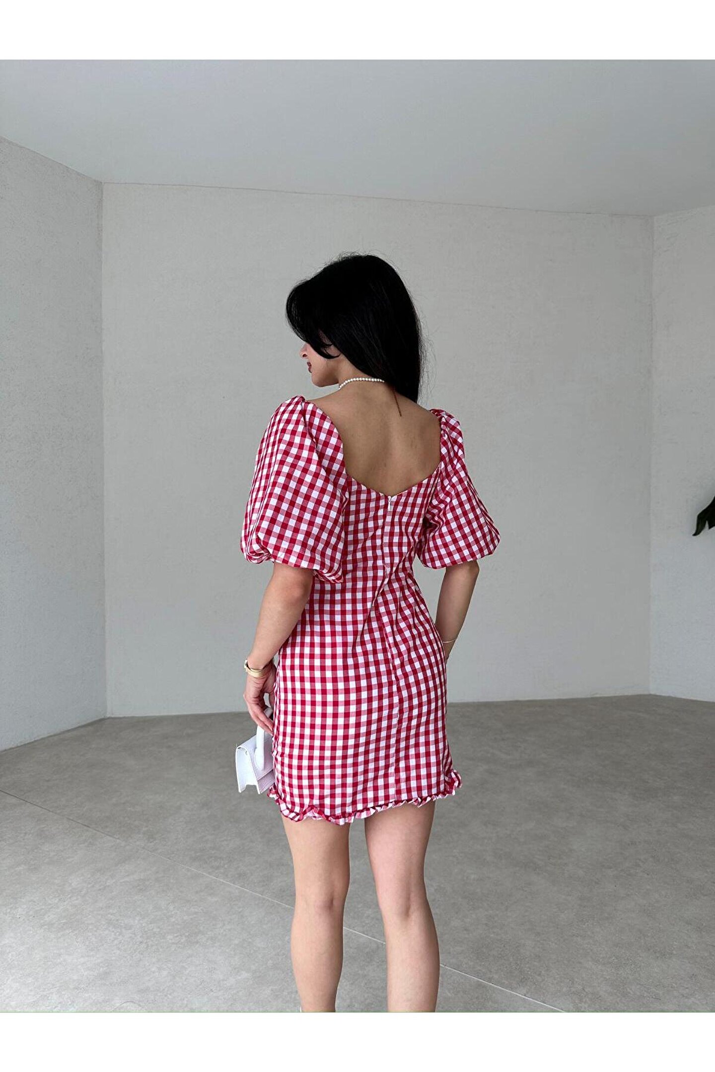 - Her yaş grubuna hitap eden tasarımıyla, gençlerin enerjisini ve stilini yansıtan pötikareli kırmızı mini elbise; - Bele oturan kalıbı sayesinde vücut hatlarını zarifçe sararak feminen bir siluet oluşturur; - Mini boyu ile modern ve şık bir görünüm sunar, hareket özgürlüğünüzü kısıtlamaz; - Dokuma kumaş tipi, dayanıklılığı ve konforu bir arada sunarak uzun süreli kullanım imkanı sağlar; - Düz kesimiyle sade ve şık bir görünüm elde ederken, pötikareli deseniyle dikkat çekici detaylar ekler;