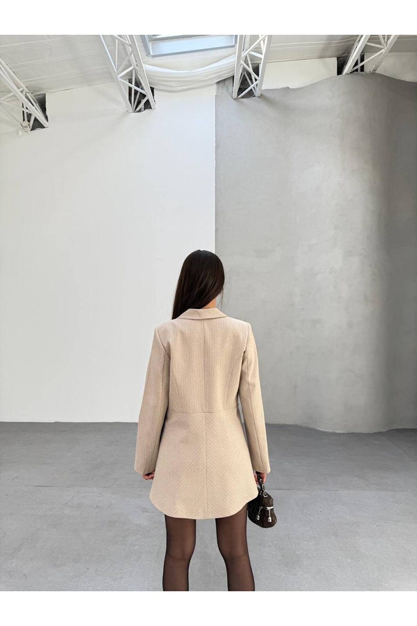 şal yaka tasarım uzun blazer / ceket elbise formu çizgili dokulu şık kumaş rahat modern kesim hem günlük hem özel davetlerde kullanılabilir ofis-kokteyl-akşam kombinlerine uygundur.;