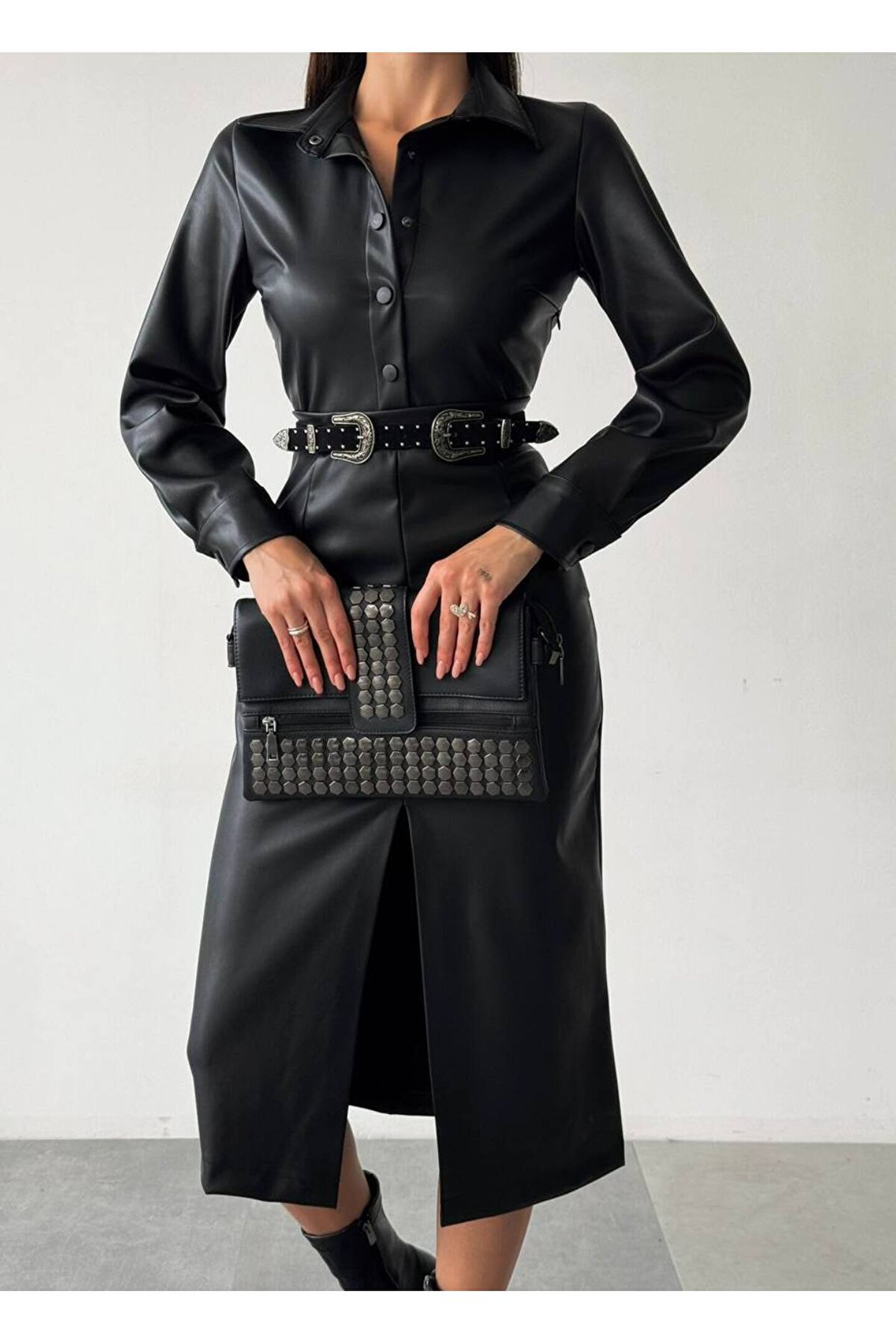 popibutik ŞARDONLU MİDİBOY DERİ ELBİSE