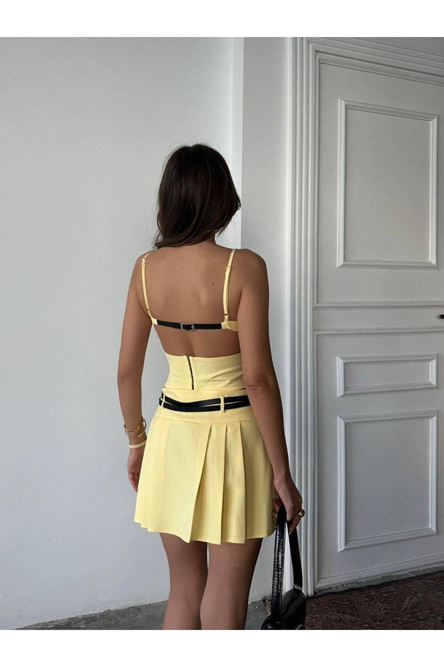popibutik Sırt Dekolteli Kemerli Pileli Etek Likralı Mini Elbise