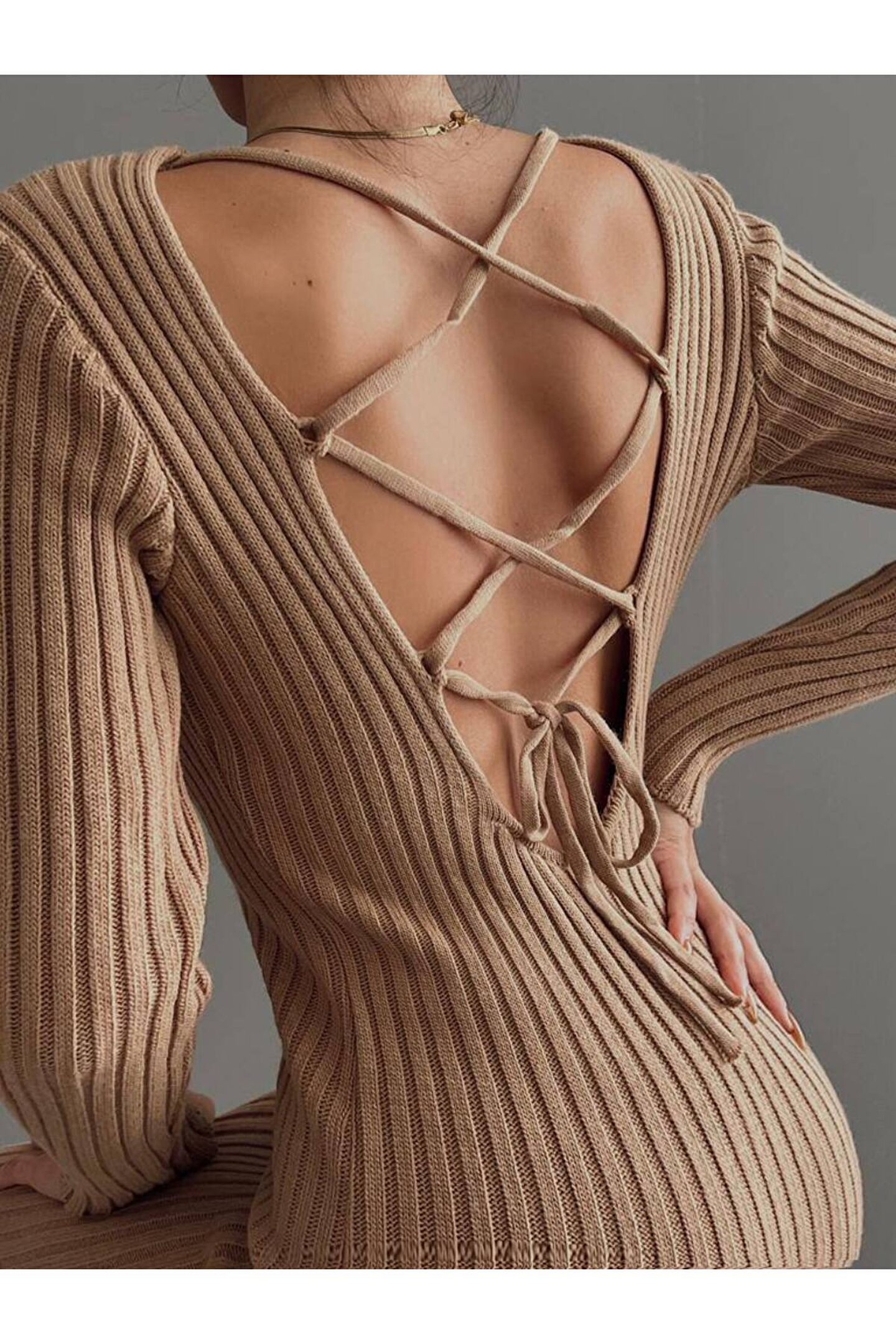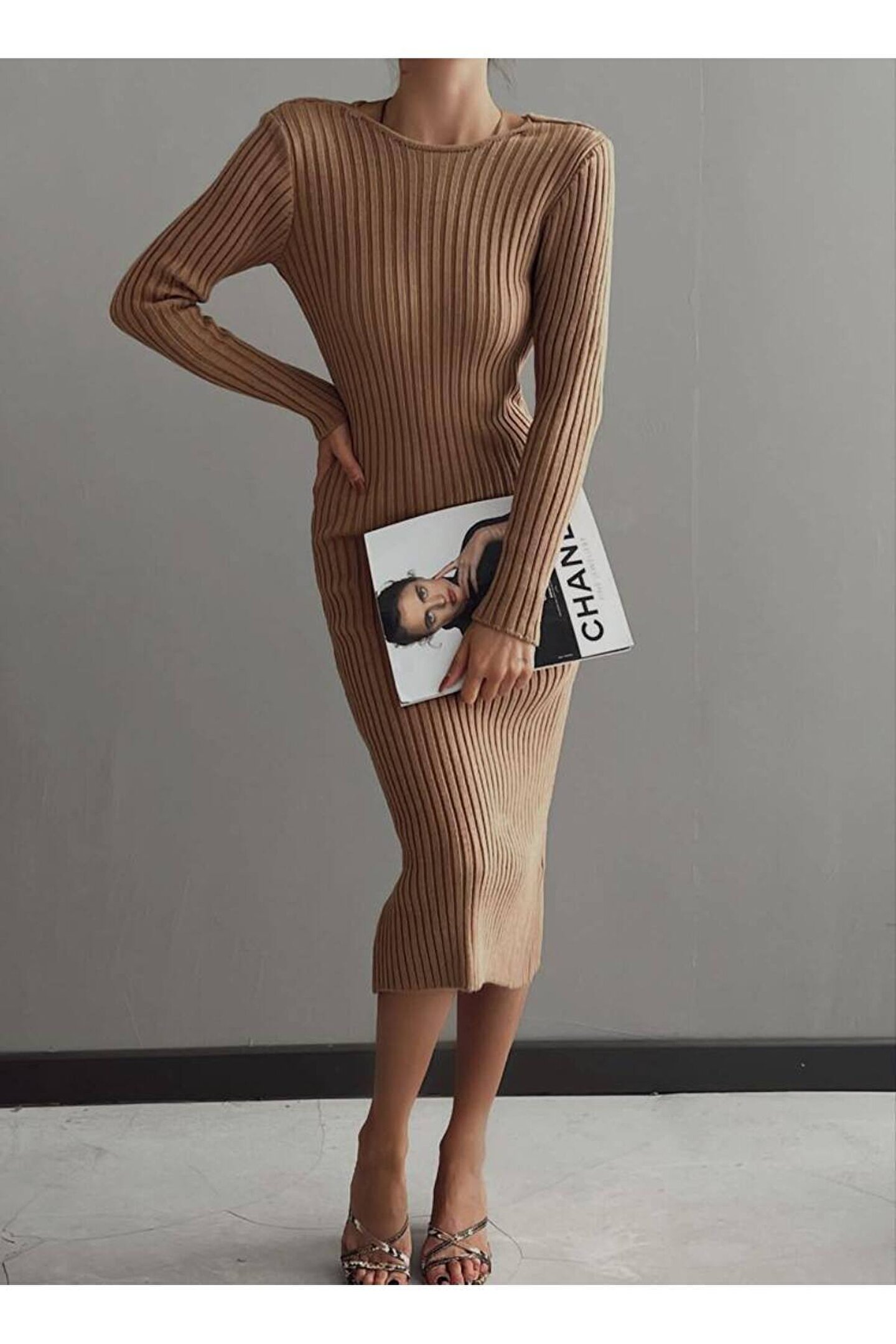 Rahat kesimiyle her vücut tipine uyum sağlayan regular kalıp, günlük kullanımda konforlu bir deneyim sunar.; Her yaştan kadının gardırobunda yerini alabilecek düz tasarımlı bu elbise, zamansız şıklığı yakalıyor.; Yumuşak dokusuyla öne çıkan triko kumaşı, gün boyu rahatlıkla hareket etme imkanı tanırken aynı zamanda sıcak tutar.; Sırt detayına eklenen ip detaylarıyla modern ve trend bir görünüm kazanan bu elbise, gençlerin tarzını yansıtacak şekilde tasarlanmıştır.; Standart boy uzunluğuyla her türden ayakkabıyla kolayca kombinlenebilir; böylece farklı stil tercihlerine uyum sağlar.;