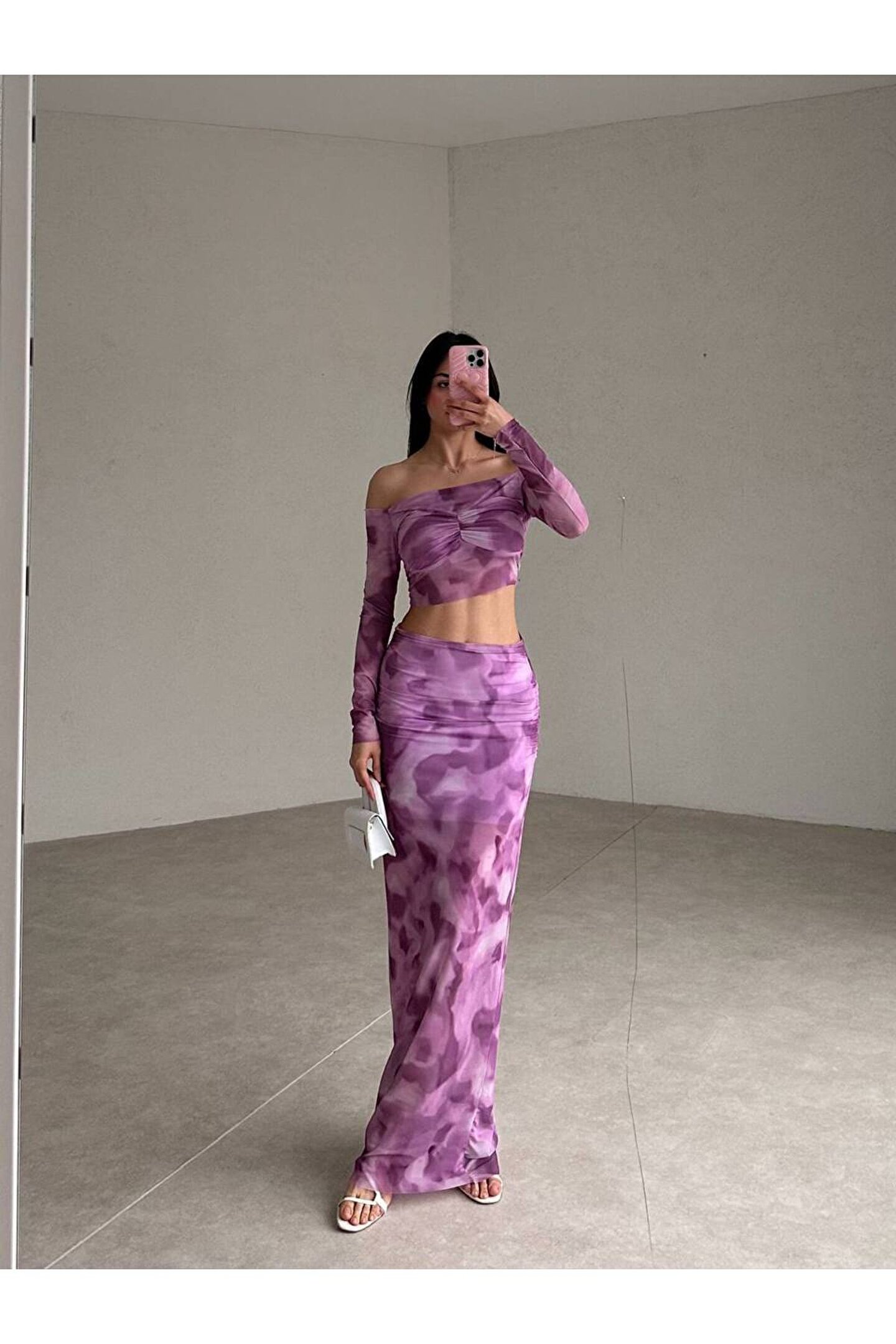 Her yaş grubuna hitap eden, lila tül kumaştan üretilmiş crop takım, şıklığı ve rahatlığı bir arada sunar; Regular boy kesimi ile gün boyu konforlu bir kullanım sağlar ve vücut hatlarını zarifçe sarar; Astarlı yapısı sayesinde rahatlıkla tercih edilebilen bu takım, iç giyim konusunda da pratik bir çözüm sunar; Slim silueti ile modern ve şık bir görünüm kazandırırken, geometrik deseniyle trendleri takip eden bir stil oluşturur; Yüksek bel tasarımı sayesinde hem zarif hem de rahat bir oturuş sağlar; günlük kullanım için idealdir; Belirtilmemiş kumaş tipi, esneklik ve dayanıklılığı garanti ederken, slim kalıbı vücut hatlarını mükemmel şekilde sararak feminen bir duruş sergiler;