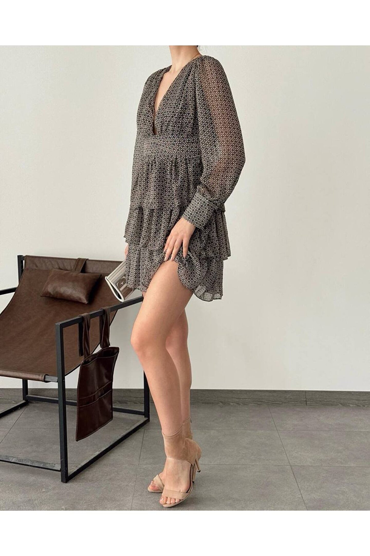 Zarif V yaka tasarımıyla feminen çizgiler ön plana çıkar.; Şifon kumaş yapısı sayesinde hafif ve rahat bir kullanım sunar.; Mini boyu ile modern ve dinamik bir görünüm kazandırır.; Dantel detayları ile sofistike bir dokunuş ekler ve göz alıcı bir parlaklık sağlar.; Her yaştan gençlerin tercih edebileceği düz kesim tasarım, geniş kullanım alanına sahiptir.; Slim kalıp, vücut hatlarını nazikçe sararak şık bir siluet oluşturur.;
