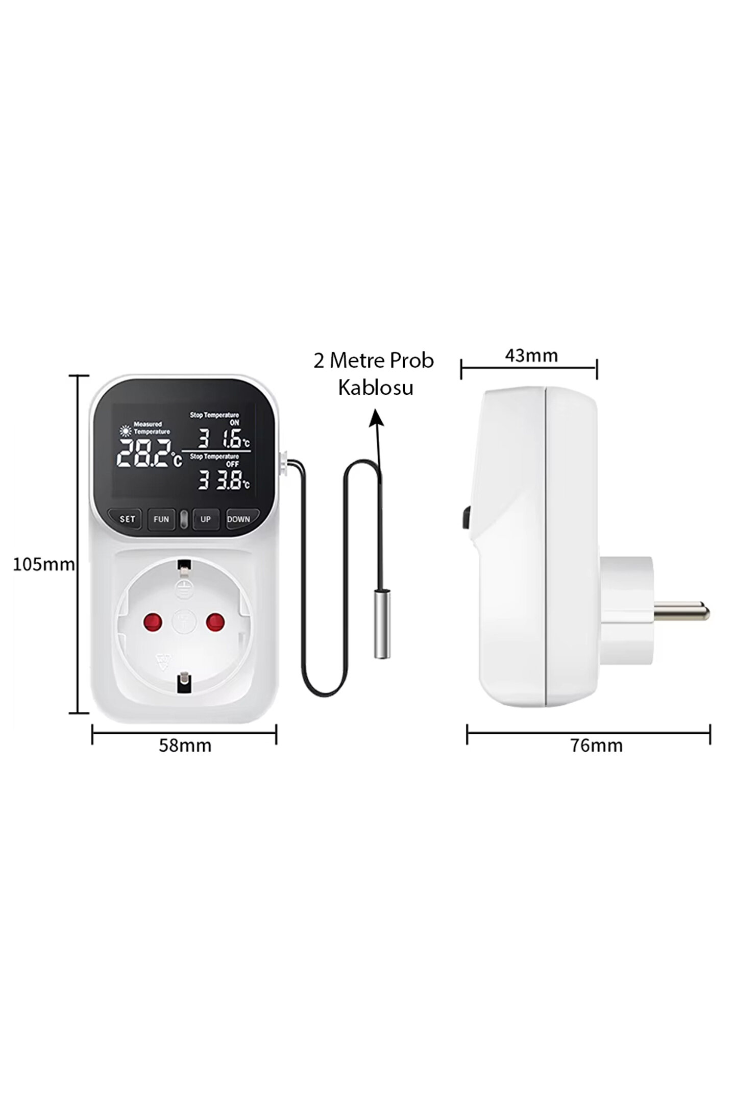 - Prob Kablosu Uzunluğu: 2 metre (ısı kaynağından bağımsız ölçüm imkanı)