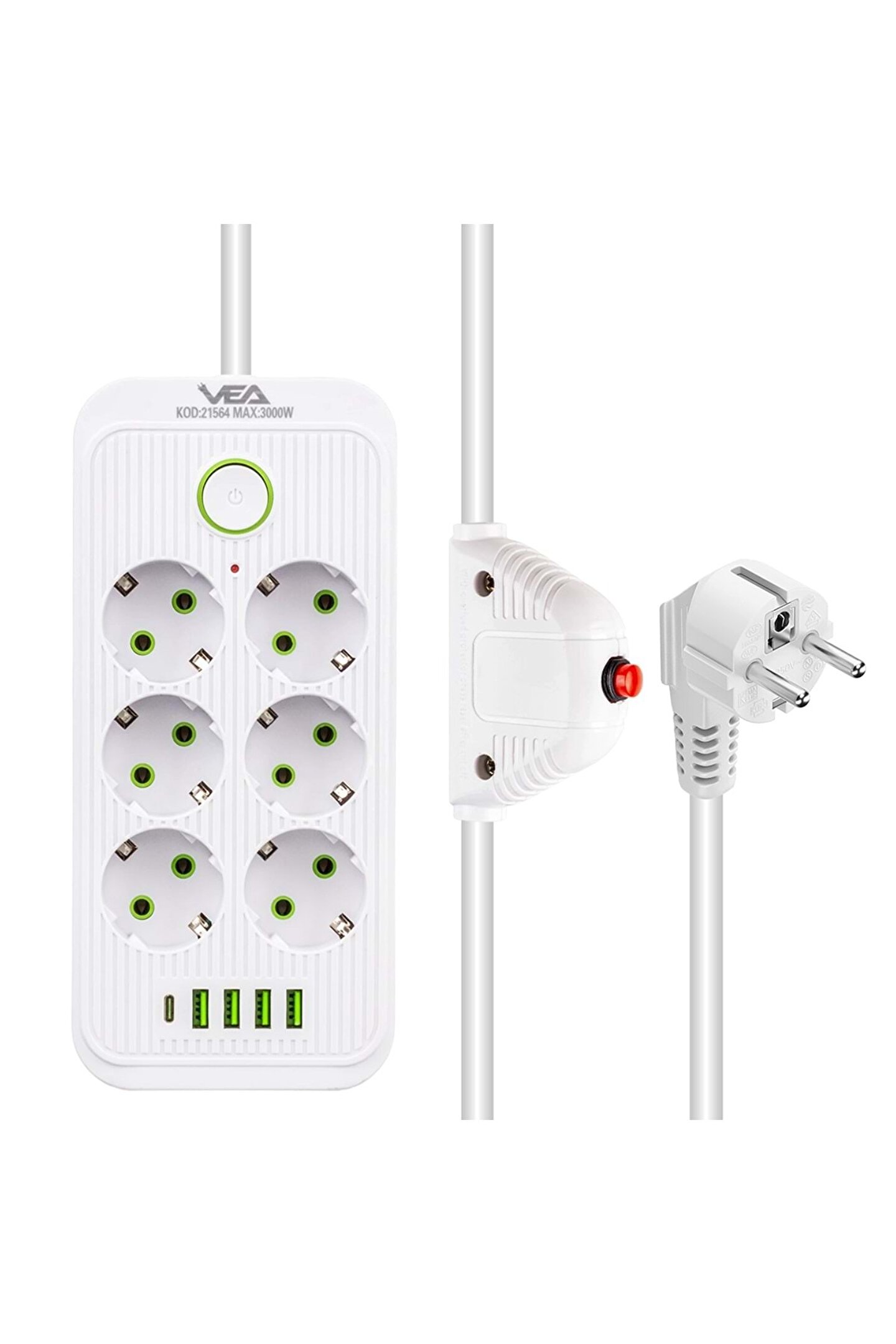 VEA VA-21564 6'lı Grup Priz Özellikleri Evinizde veya iş yerinizde birden fazla elektrikli cihazı güvenle bağlamak ve şarj etmek için ideal bir çözüm arıyorsanız, VEA VA-21564 6'Lı Akım Korumalı Priz tam size göre! 6 priz çıkışı ve 1 adet Type-C ve 4 adet USB portuyla donatılmış bu akıllı priz, güvenli ve pratik bir enerji dağıtımı sağlar. VEA VA-21564 6'Lı Akım Korumalı Priz, evinizde veya iş yerinizde elektrikli cihazları düzenlemek ve şarj etmek için ideal bir çözümdür. Hem priz hem de Type-C ve USB portları ile çok yönlü kullanım sunar, aynı zamanda 750 dereceye kadar yanmaya dayanıklı özel malzemesi ile güvenliği ön planda tutar. Ürün Detayları: 6 Priz Çıkışı: Birden fazla cihazı aynı anda bağlayabilirsiniz. 4 USB Portu: Telefonlar, tabletler ve diğer USB cihazlarınızı şarj etmek için ekstra portlar. Type-C Portu: Telefonlar, tabletler ve diğer Type-C cihazlarınızı şarj etmek için ekstra portlar. 750 Derece Yanmaya Dayanıklı: Özel malzemesi sayesinde yüksek sıcaklıklara karşı dayanıklıdır. Akım Koruma: Elektrik akımı dalgalanmalarına karşı cihazları korur. 16A Kapasite, 3000W Güç: Yüksek güç ihtiyacını karşılar, aynı anda birçok cihazı güvenle çalıştırabilirsiniz. 1.5 Metre Kablo Uzunluğu: Esnek kullanım için ideal uzunluk. Pratik Anahtarlar: Her priz için on-off anahtarlarıyla cihazları kolayca kontrol edin. Neden Tercih Etmelisiniz? Güvenlik: 750 dereceye kadar yanmaya dayanıklı malzeme ve akım korumasıyla ev ve iş yerinizde güvenli bir enerji dağıtımı sağlar. Pratiklik: 6 priz, 1 Type-C ve 4 USB portuyla çoklu cihaz bağlantısı yapabilir, enerji dağıtımınızı optimize edebilirsiniz. Dayanıklılık: Yüksek kaliteli malzeme ve sağlam yapı, uzun ömürlü kullanım sağlar. Esneklik: 1.5 metrelik kablo uzunluğuyla prizi istediğiniz yere kolayca yerleştirebilirsiniz. VEA VA-21564 6'Lı Akım Korumalı Priz, güvenli, pratik ve dayanıklı bir enerji dağıtımı için ideal bir seçenektir. Evde veya iş yerinde birden fazla cihazı bağlamak ve şarj etmek için mükemmel bir çözümdür. Yüksek güç kapasitesi, akım koruması ve Type-C, USB portlarıyla modern yaşamın gereksinimlerini karşılar, aynı zamanda uzun ömürlü kullanım ve güvenlik sağlar.