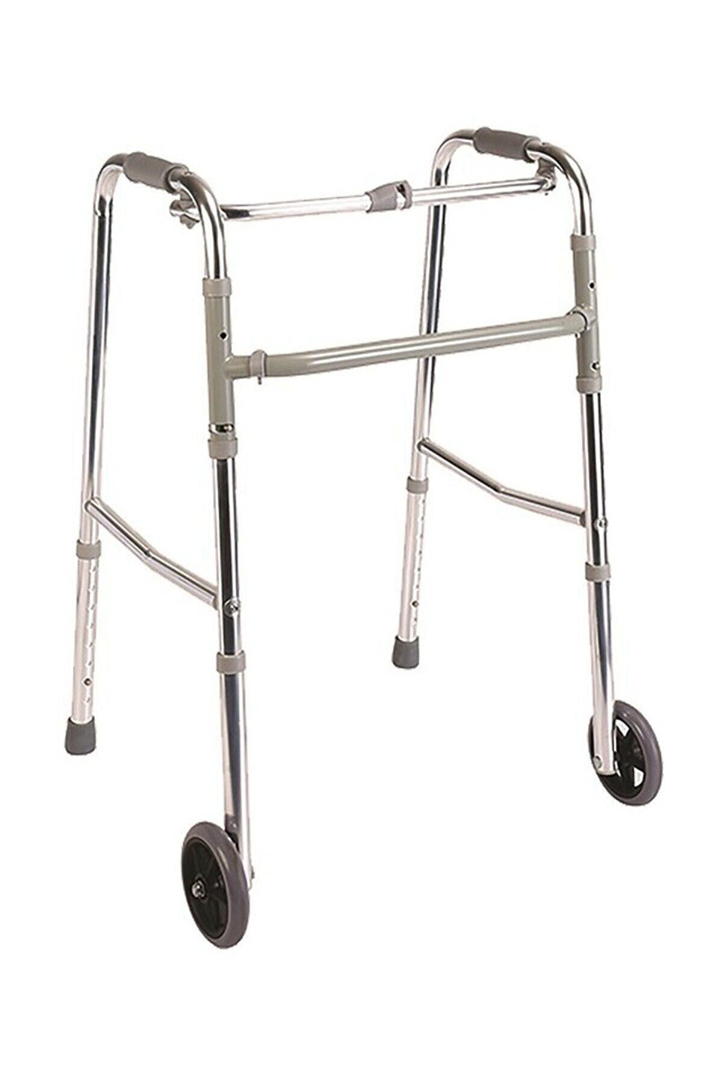 Tekerlekli Walker Alüminyum yapısı ile taşıma ve kullanım kolaylığı sağlamaktadır.; ; Hareketli yapısı ile kullanımlarda ürünü kaldırmadan kolayca kullanımını gerçekleştirebilirsiniz.; ; Tekerlekli olmasından dolayı ürünü kaldırmadan konforlu bir şekilde sürüş sağlayabilirsiniz.; ; Ergonomik tasarlanmış ve sünger el tutamaçları sayesinde uzun süreli kullanımlarda herhangi bir rahatsızlık yaşamaksızın keyifli kullanım sağlamaktadır.; ; Tek pim sayesinde iki saniyede katlayıp depolanması mümkündür.; ; Tekerlekli Walker Genel Özellikleri Hafif alüminyum yapısı ile taşıma kolaylığı sağlar Dönen gövde yapısı kullanıcı ile birlikte hareket etmeye olanak tanır Yerde iz bırakmayan ve kaymayan kaucuk pabucu ile güven verir Kullanıcı tipine göre 8 kademede bacak boyu ayarlanabilir Konforlu köpük el tutamaçlaı ergonomik yapıdadır Tek buton ile kolayca tek elle katlanabilir Katlanma özelliği ile kolay taşıma ve depolama sağlar Tekerlekli Walker Garanti Kapsamı Medikal Tedarikçi Firması tarafından Yedek Parça ve Ürün Garanti kapsamındadır.; ; Garanti Kapsamı süresinde, fabrika hatalarından doğan kusurlarda kargo maliyetleri tedarikçi firma tarafından karşılanır.; ; Müşteri tarafından gönderilen kargolar anlaşmalı kargo şirketi ile gönderildiği takdirde maliyeti tedarikçi firma tarafından karşılanır.; ; Başka bir kargo firması ile gönderildiğinde kargo maliyeti müşteriye aittir.; ; Garanti kapsamı dışında kullanıcı hatalarından kaynaklı ürünlerin kargo gönderimleri müşteriye aittir.; ; YÜRÜME GRUBU Adet/Karton 4 Adet / Karton Karton Ölçüleri 80x26x45 cm Malzeme Rengi Krom Parçaların Rengi Gri Ürün Ağırlığı 2.72 Kg Yükseklik 75.50-93.50 cm;