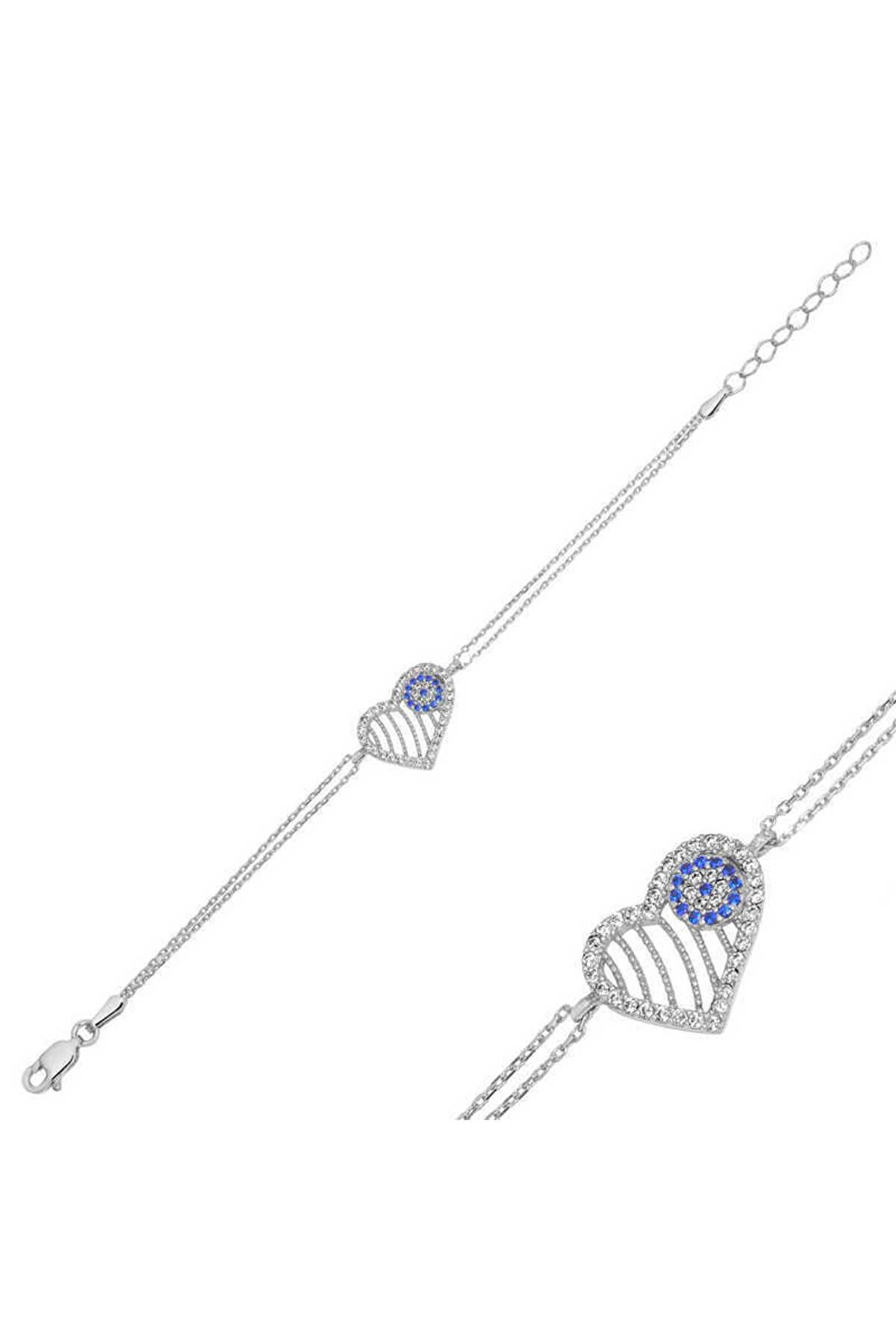 Samur Parti Parti Aksesuar & Kostüm 925 Ayar Gümüş Nazarlı Kalp Kadın Bileklik