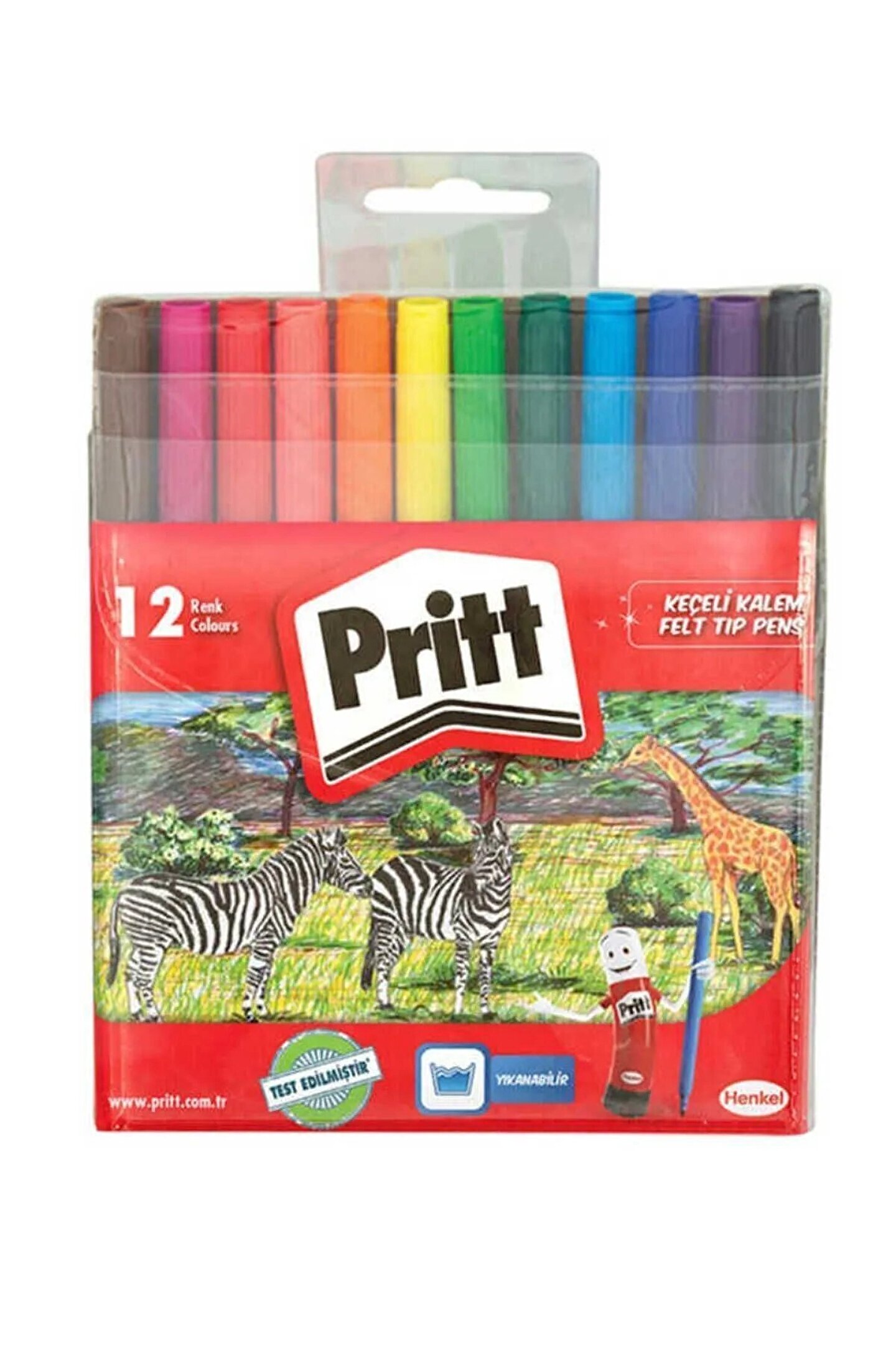Pritt Keçeli Boya Kalemi 12 Renk;Yaratıcılığı geliştirir – Çocukların sınırsız yaratıcılıkta yazım, çizim ve boyama aktiviteleri için ideal, ilham verici 12 dayanıklı ve parlak renkli kalem.;Kurumayı önler – Özel kapak tasarımı sayesinde hemen kurumaz. Bu dayanıklı kırtasiye malzemesi çocukların hayal dünyalarına uzun süre renk katmaya devam eder.;Çocuk dostu – Çocuklara zararlı hiçbir kimyasal madde içermeyen zararsız formülüyle okulda ve evde el işi faaliyetlerinin vazgeçilmez yardımcısı sağlıklı boya.;Silinebilir – Hem sağlıklı hem pratik. Yaratıcılığın sınırlarını ortadan kaldıran bu renkli kalem seti ile istedikleri gibi boyasınlar. Su ile kolayca temizlenir.;Ambalaj içeriği – Pritt Keçeli Kalemler, yaratıcı aktiviteler için su bazlı zararsız boya, yazım, çizim ve boyama sonrası silinebilir renkli kalem, 12 Renkli Paket;Canlı renkler, eğlenceli bir dünya!;Her çocuk bir sanatçıdır! Pritt Keçeli Kalemler parlak renkleriyle çocukların yaratıcı gücünü ortaya çıkarıyor. 12 farklı renk, hayal dünyalarını renklendiriyor. Üstelik sağlıklarına hiç zarar vermeden! Bu pratik ve eğlenceli boya kalemleriyle evde ve okulda resim faaliyetleri bir partiye dönüşecek.;Çocuklar için zararlı hiçbir kimyasal madde içermeyen bu zararsız boya, çocukların güvenle vakit geçirebilecekleri bir oyun arkadaşıdır. Su bazlı formülü sayesinde çocuk dostu bu renkli kalemlerle diledikleri kadar resim yapacaklar! Üstelik özel kapak tasarımı sayesinde uzun süre dayanır, hemen kurumaz. ;Bu hem sağlıklı hem pratik kırtasiye malzemesini, çocuklar kadar büyükler de sevecek. Bırakın istedikleri gibi boyasınlar! En eğlenceli boyama partilerinden sonra bile sadece suyla silerek temizlenir. ;Ürünün Başlıca Faydaları:;Canlı renkleriyle çocukların eğlenceli bir dünya yaratmasını sağlar;Su bazlı formülü ile çocuk sağlığına zararsızdır;Uygulamadan sonra su ile silinebilir;Özel kapak tasarımı sayesinde hemen kurumaz;12 Renkli Paket