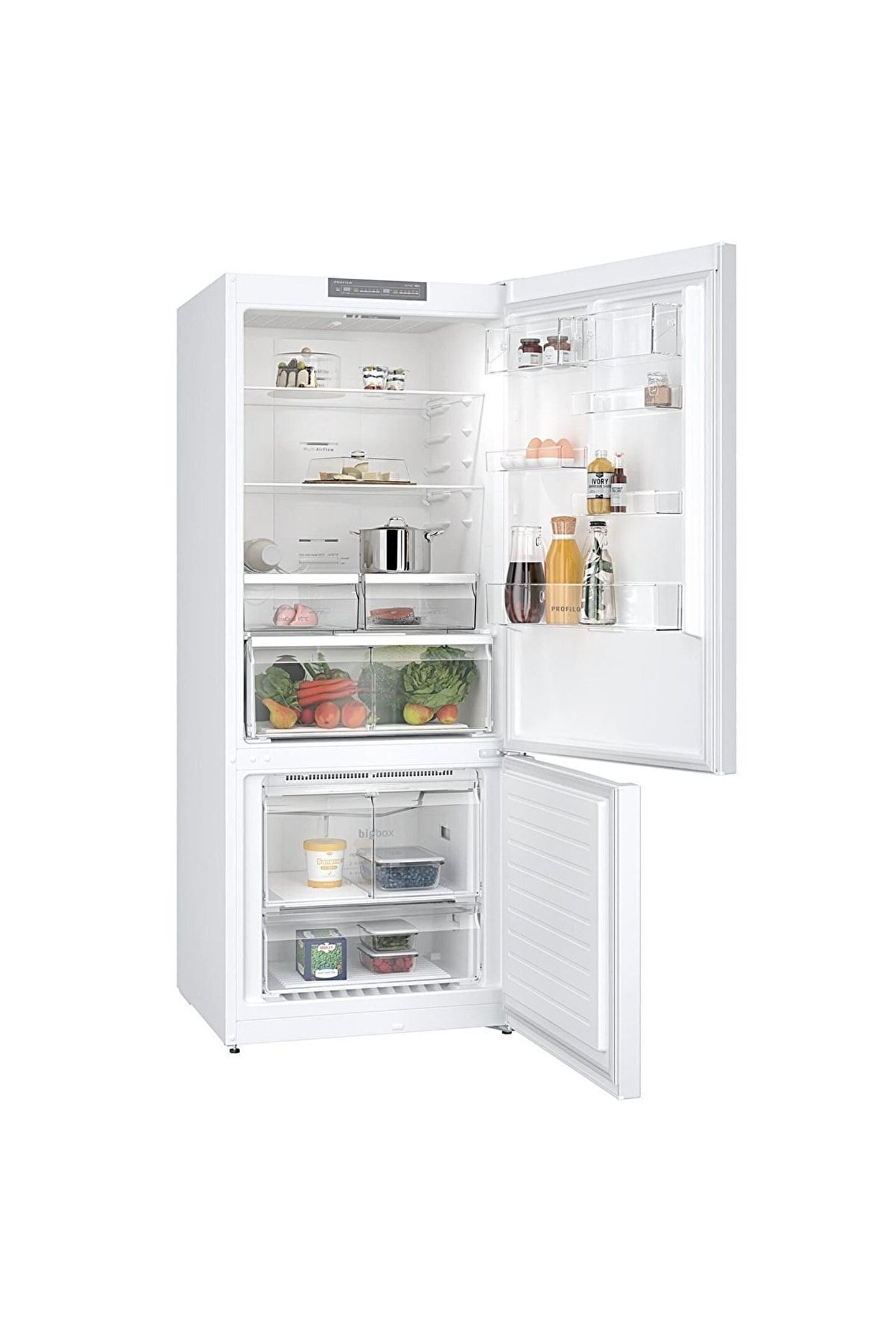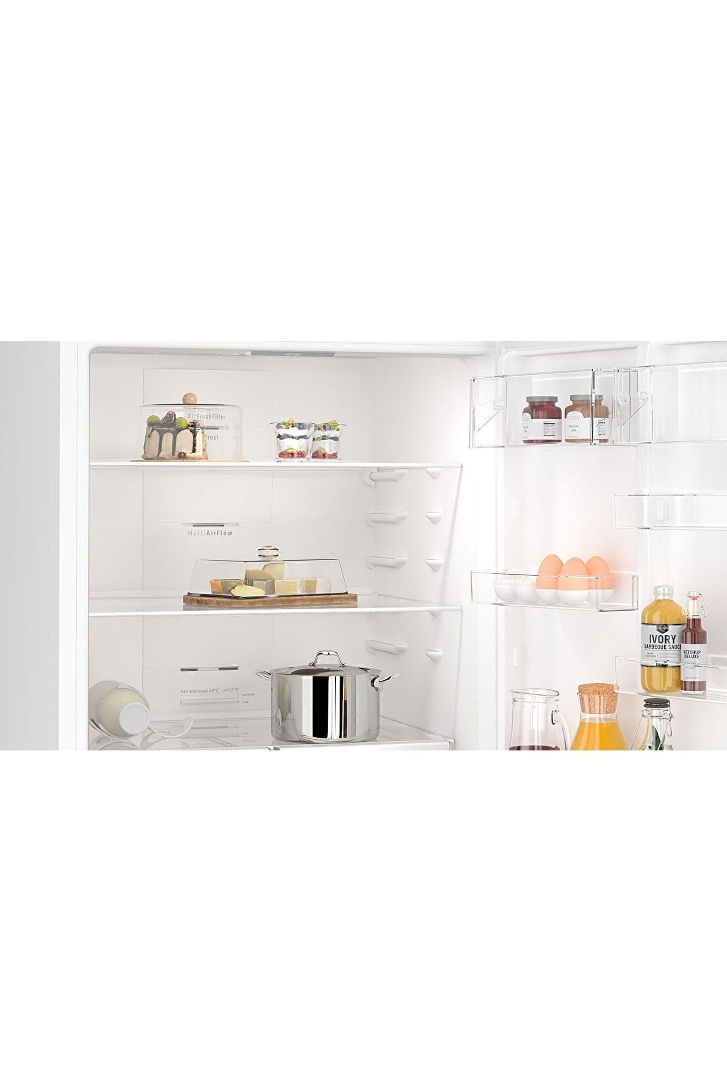 Ürün Bilgileri Genel Özellikler Renk Beyaz Kapı yönü Sağ, değiştirilebilir Kapı panel seçenekleri Yok Kapı kolu tipi Entegre kapı kolu Duvar mesafesi yok Evet NoFrost Evet Kullanma şekli Derin dondurucu sıcaklık göstergesi, Dondurucu uyarı fonksiyonu, Ekonomi modu / Tatil modu, Kapı açık kaldığında uyarı sinyali, Soğutucu sıcaklık göstergesi, Süper dondurma fonksiyonu, Süper soğutma fonksiyonu Enerji verimlilik sınıfı E Yılda kilovat saat (kWh / a) yıllık ortalama enerji tüketimi 274 kWh/yıl soğuk bölümlerin hacminde toplamı 406 litre Donmuş bölümlerin hacminde toplamı 120 litre Ses seviyesi 40 dB(A) re 1 pW Ses verimllik sınıfı C İklim sınıfı Genişletilmiş ılıman, ılıman, subtropikal, tropikal Entegre aksesuarlar 3 x Yumurtalık Tasarım Renk Beyaz Kompresör adedi 1 Kurulum tipi Solo Kontrol Tipi Elektronik Bağımsız soğutucu devresi sayısı 2 Kapı yönü Sağ, değiştirilebilir Kapı panel seçenekleri Yok Kapı açık uyarısı hayır Montaj Tipi N/A Boyutlar Ürün Ölçüleri (Yükseklik x Genişlik x Derinlik) 1860 x 750 x 800 mm Net ağırlık 93,5 kg