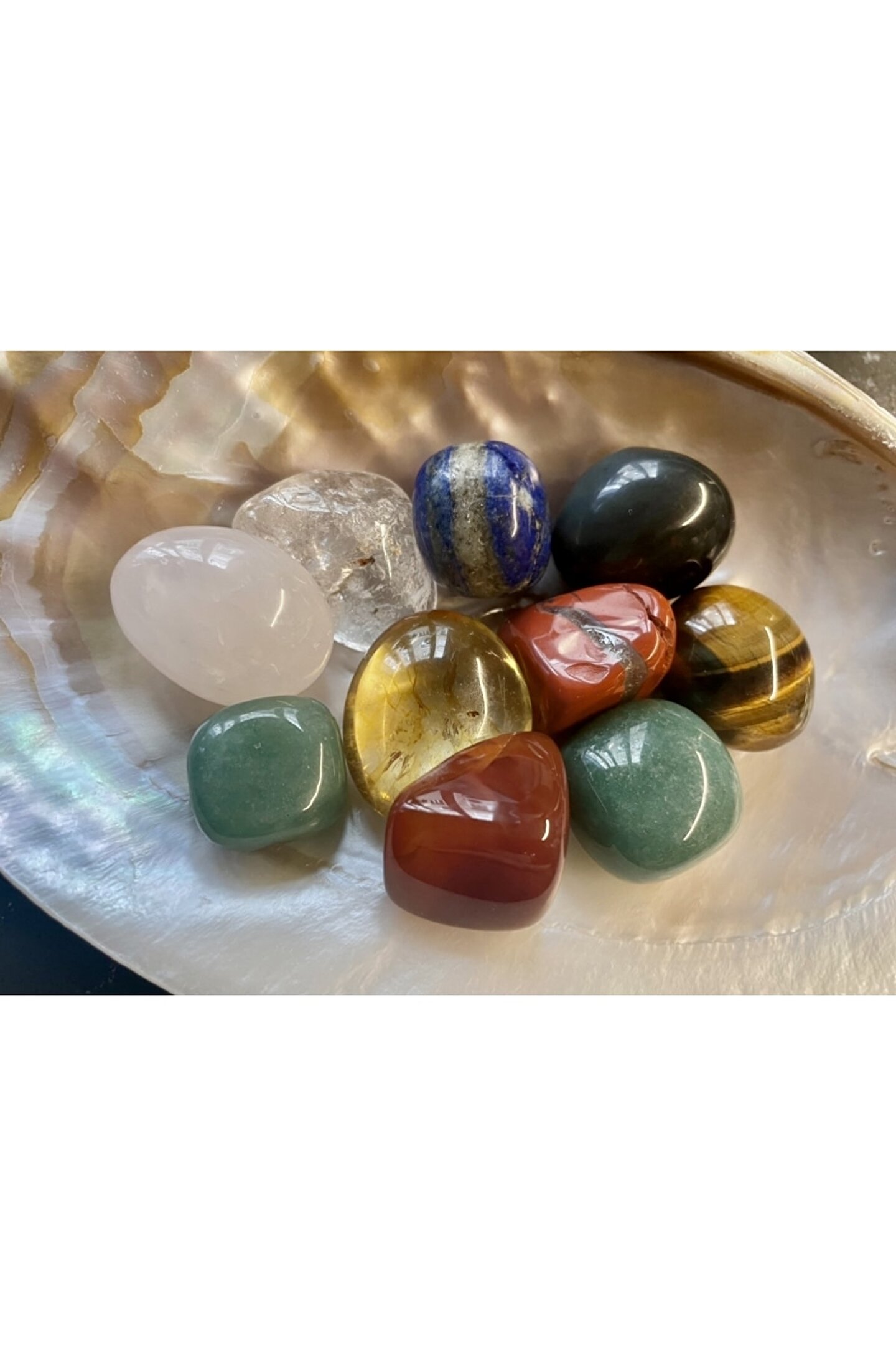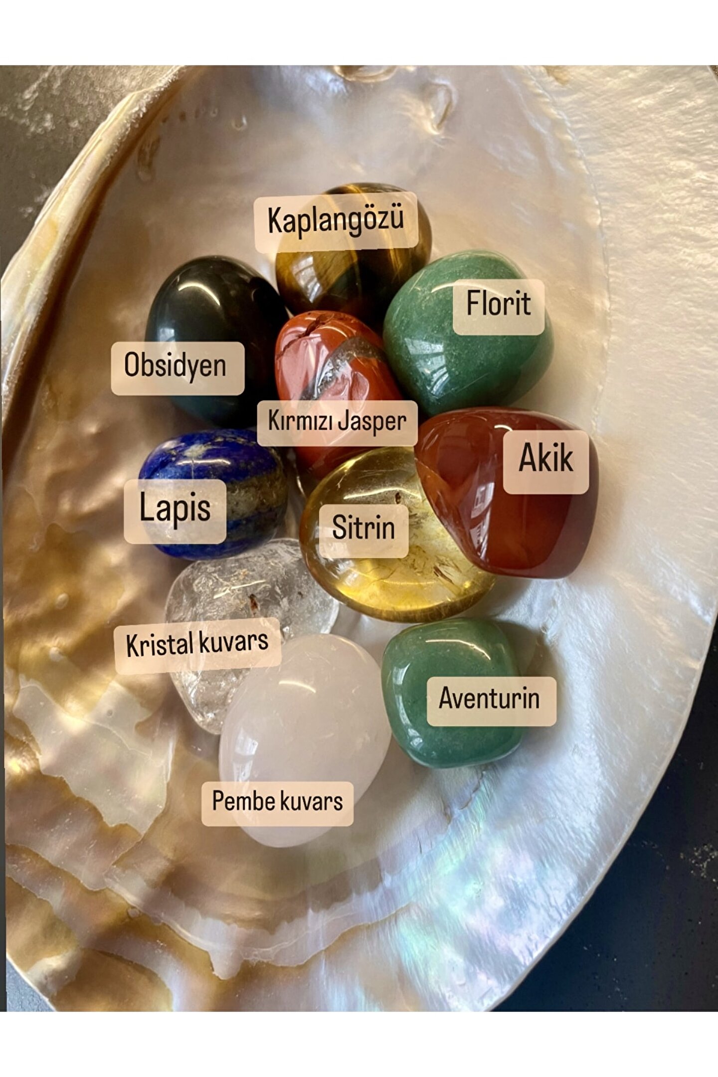 10 adet doğal taşın bulunduğu bir settir. Pembe Kuvars - Kalp Çakra ; Kristal Kuvars - Taç Çakra ; Lapis Lazuli - 3. Göz Çakra ; Obisdyen - 3. Göz ve Kök Çakra ; Kaplangözü - Sakral Çakra ve Solar Plexus Çakraları ; Florit - Kalp Çakra ; Akik - Kök Çakra ; Sitrin - Sakral Çakra ; Kırmızı Jasper - Kök ve Sakral Çakralar ; Aventurin - Kalp Çakra ; İstiridye Kabuk Tütsülük dahildir.