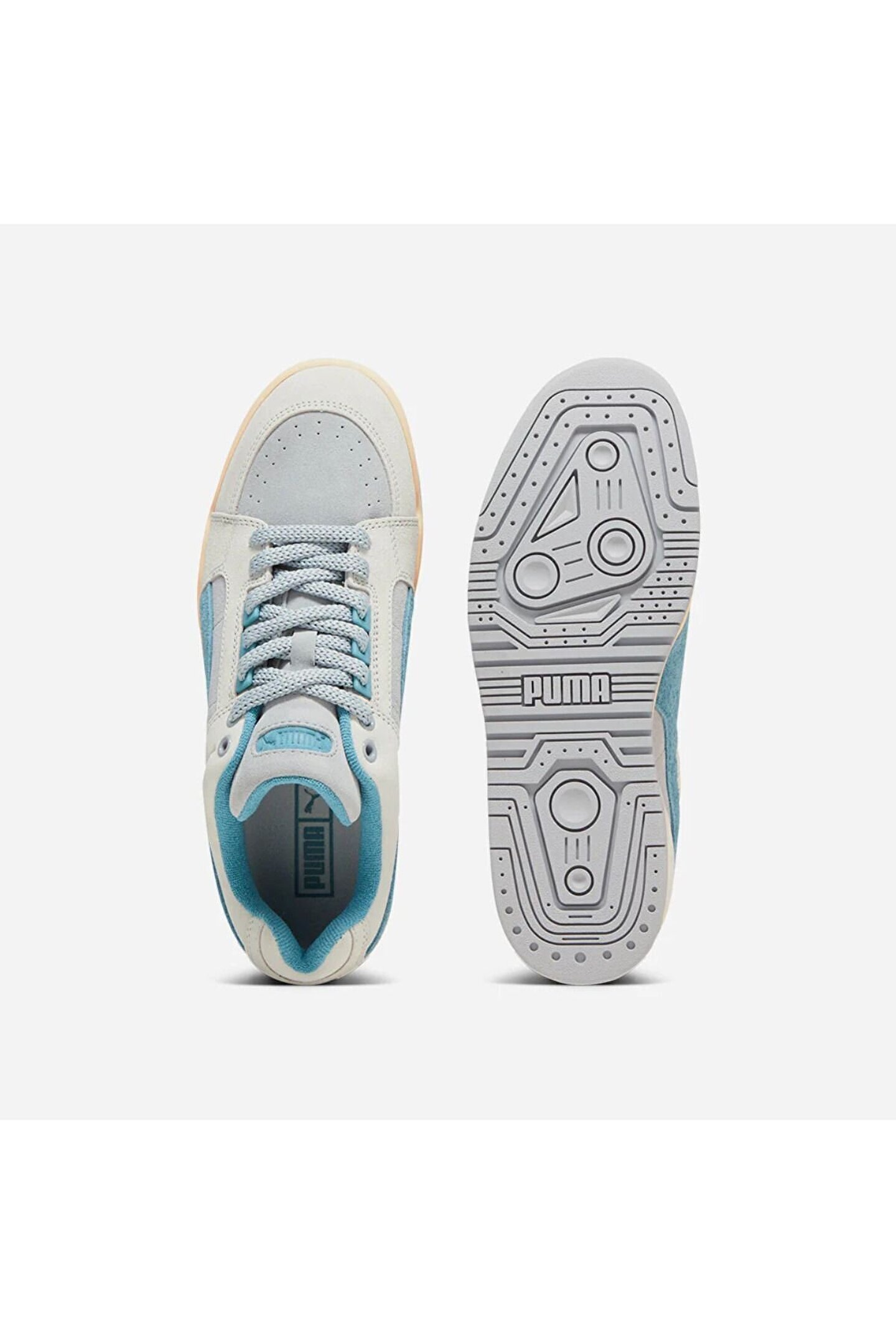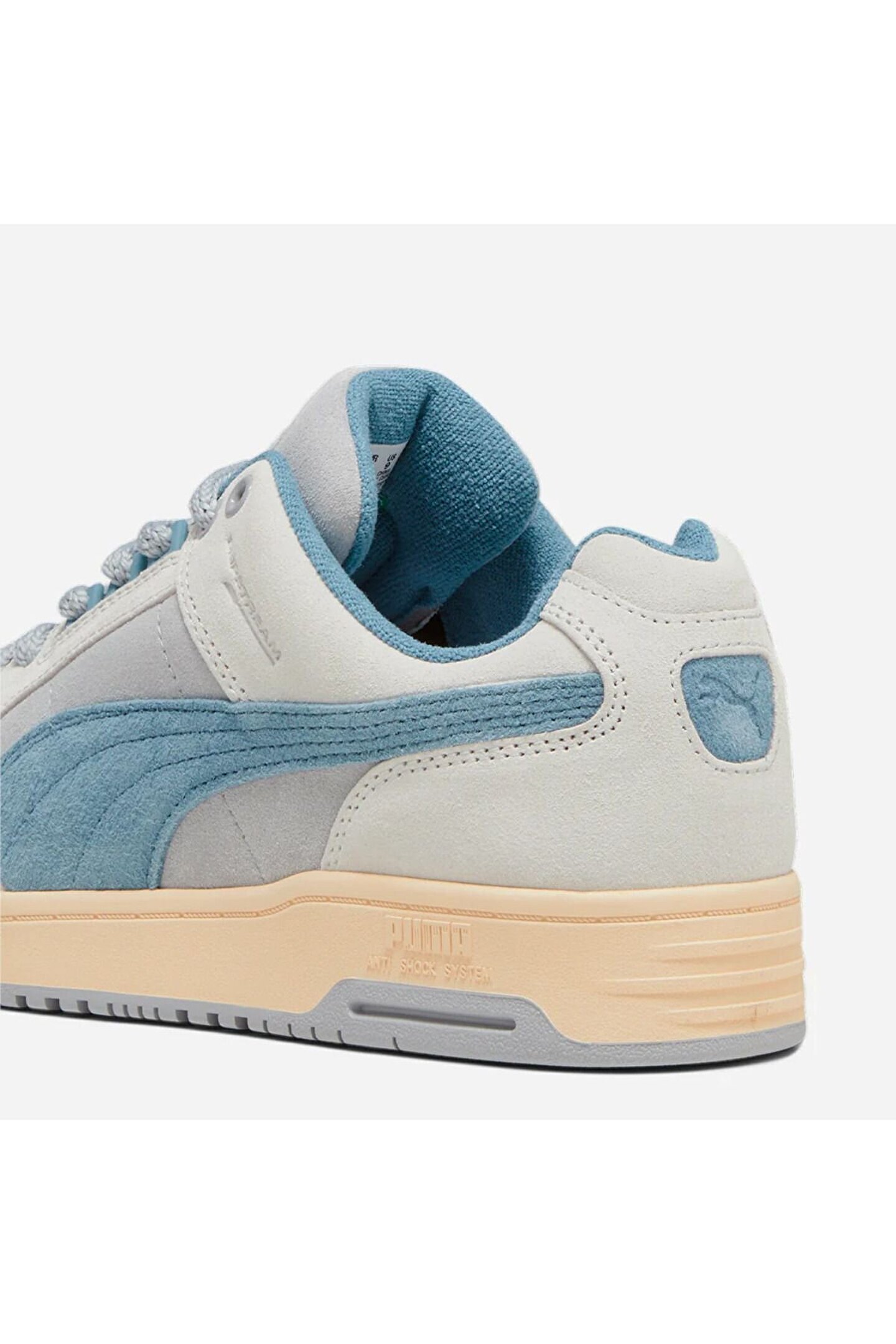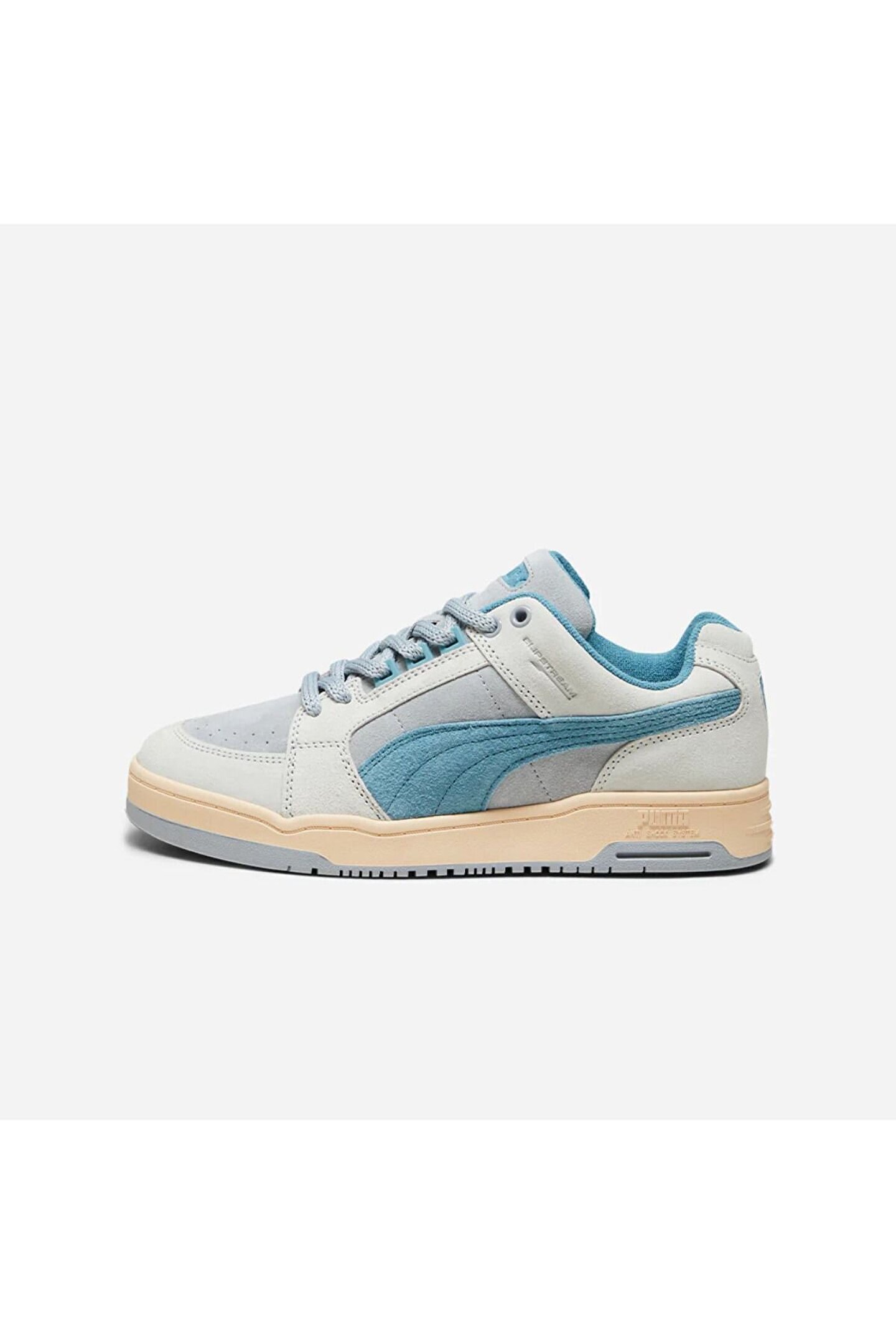Mavi tonlu Puma Slipstream Lo Texture spor ayakkabı; delikli burun detayı, yandaki formstrip deseni, marka yazı detaylı dili ve dış tabanı ile dikkat çekiyor. Deri materyale sahip olan bu spor ayakkabı modeli, bağcıklıdır.