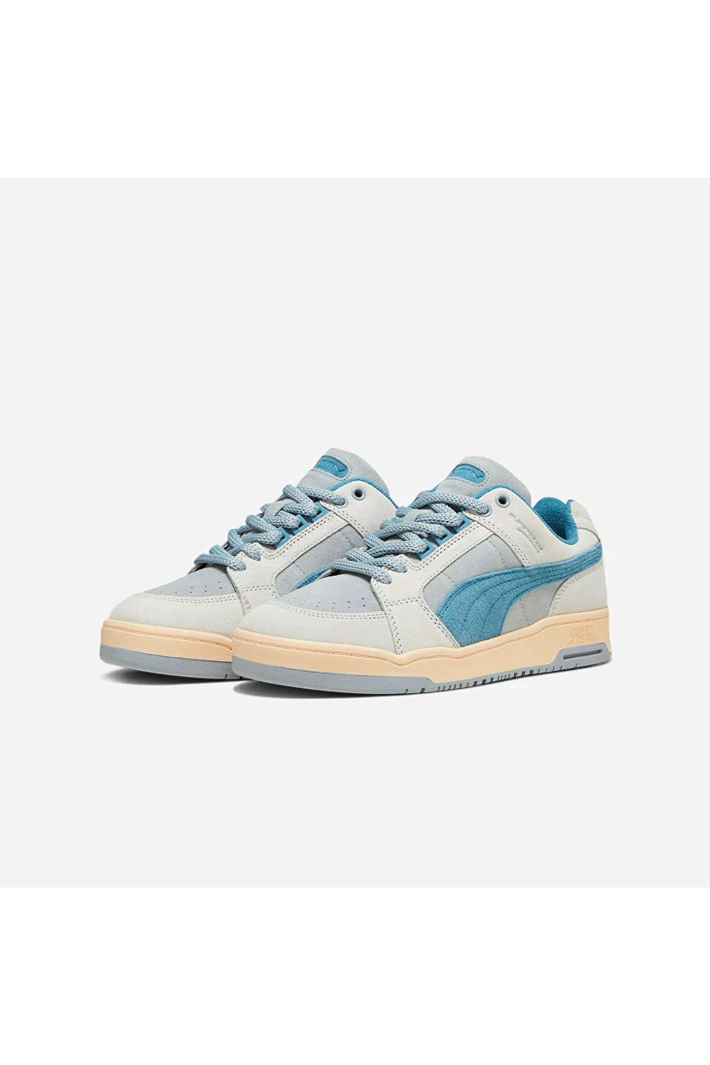 Mavi tonlu Puma Slipstream Lo Texture spor ayakkabı; delikli burun detayı, yandaki formstrip deseni, marka yazı detaylı dili ve dış tabanı ile dikkat çekiyor. Deri materyale sahip olan bu spor ayakkabı modeli, bağcıklıdır.