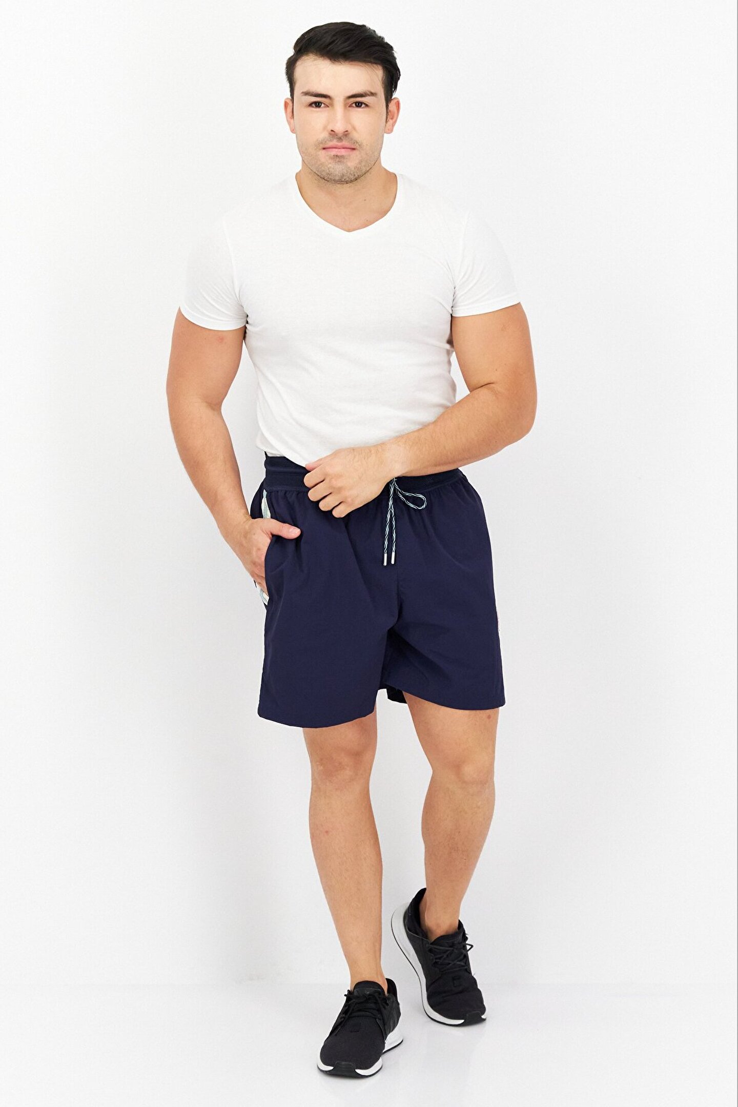 Erkek Spor Giyim Fit İşlemeli Logo Antrenman Şortu, Lacivert Kombo