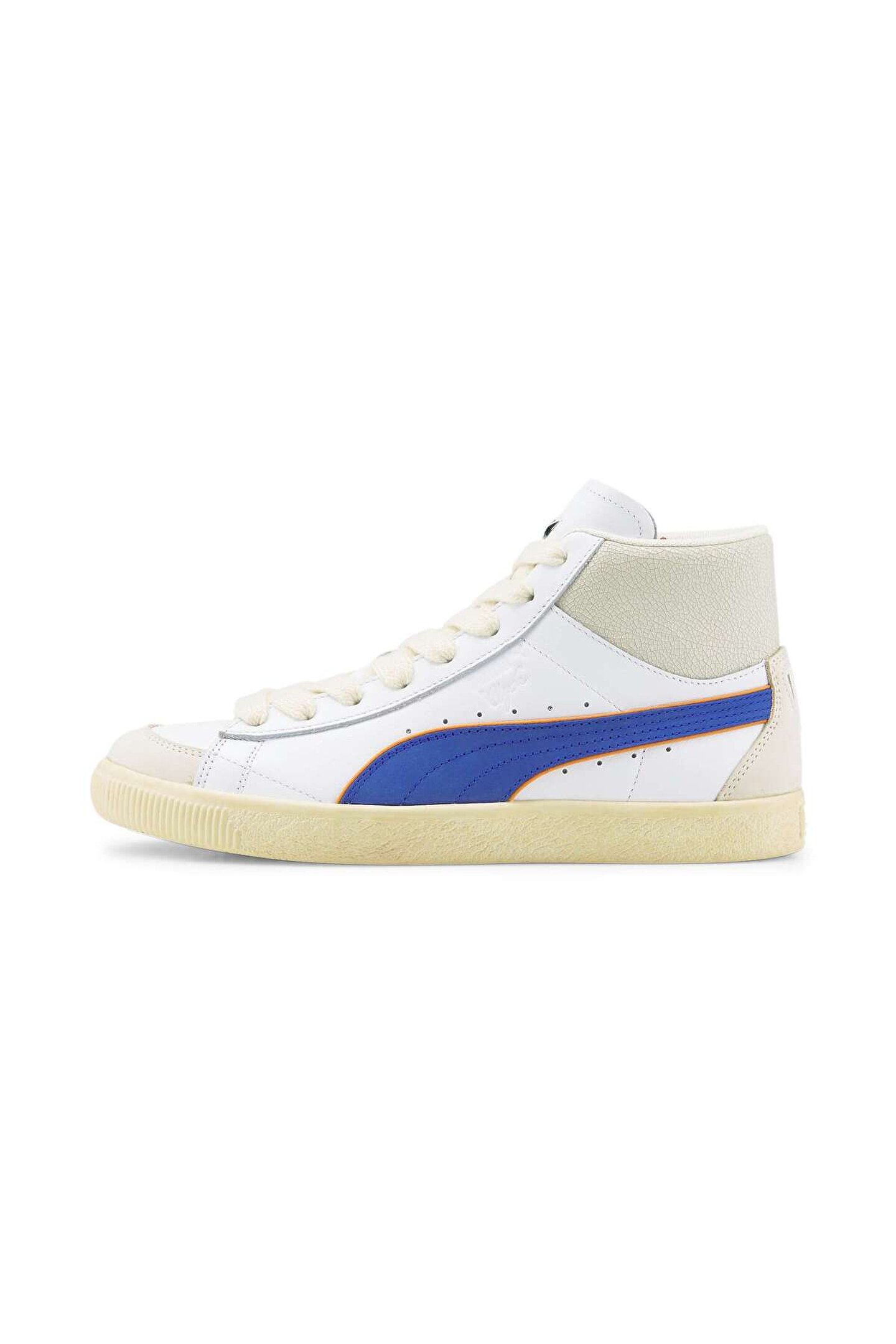 391335_01-ÜRÜN HAKKINDA PUMA x RHUIGI, sokak giyim tasarımcısı Rhuigi‘nin rap sevgisinin merceğinden 1970‘lerde hip-hop‘un çılgın ilk günlerine ışınlanmamızı sağlıyor ve PUMA‘nın NYC‘den dünyaya yayılacak stili şekillendirmeye nasıl yardımcı olduğunu gösteren nitelikte bir tasarımı bizlere sunuyor.; Clyde‘ın bu modeli o efsanevi dönemi kutluyor, bilekli yapısı ve deri üst yüzeyiyle Rhuigi‘nin imza estetiğini taşıyor.; ÖZELLİKLER & FAYDALAR Bu üründe kullanılan deri, çevreye duyarlı deri üretiminden gelir, Leather Working Group protokolü ile denetlenir ve sertifikalandırılır.; (www.; leatherworkinggroup.; com) DETAYLAR Bilekli yapı Deri üst yüzey Kauçuk orta taban Kauçuk dış taban Orta ve yanlarda PUMA Formstrip deseni PUMA x RHUIGI iş birliği logosu