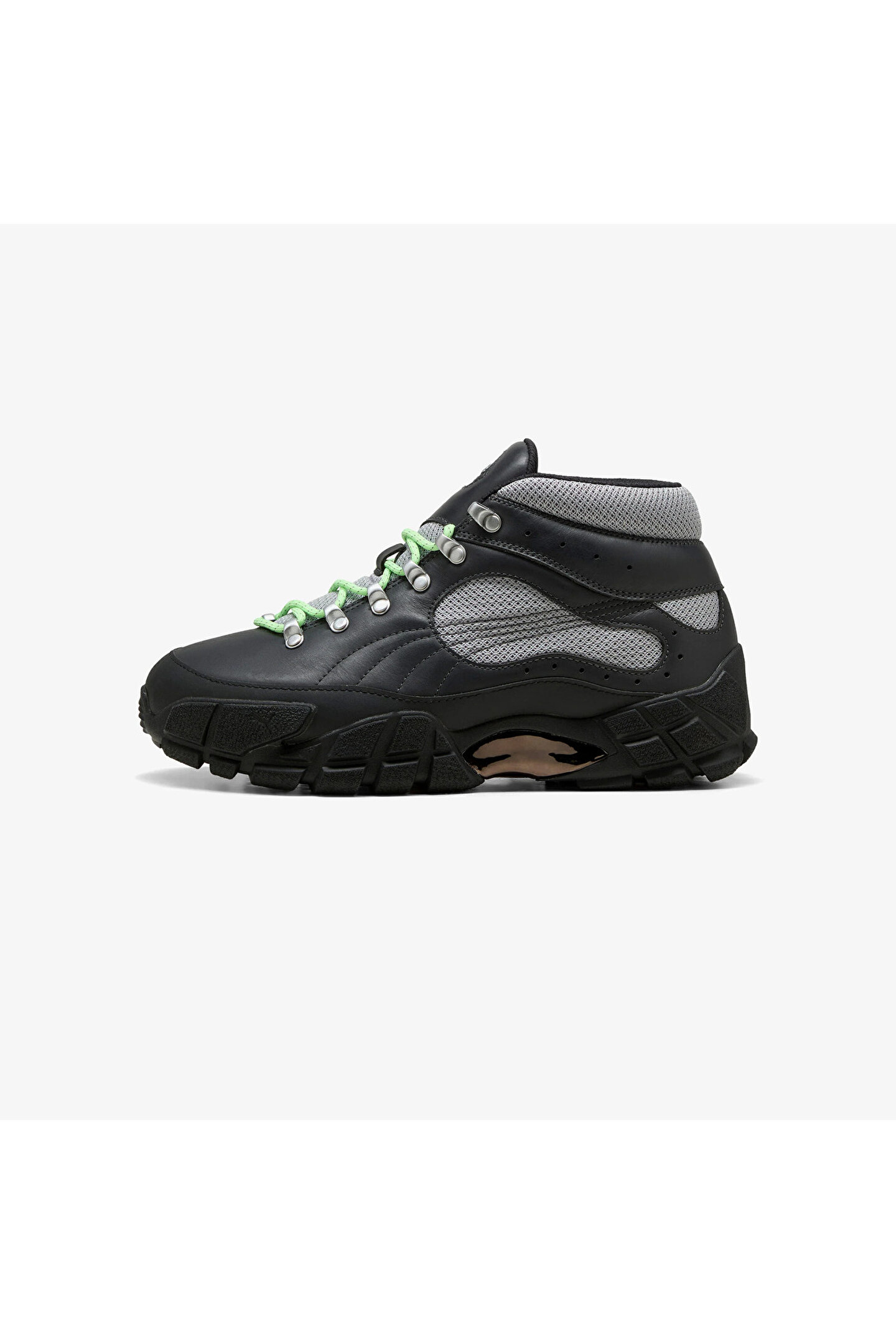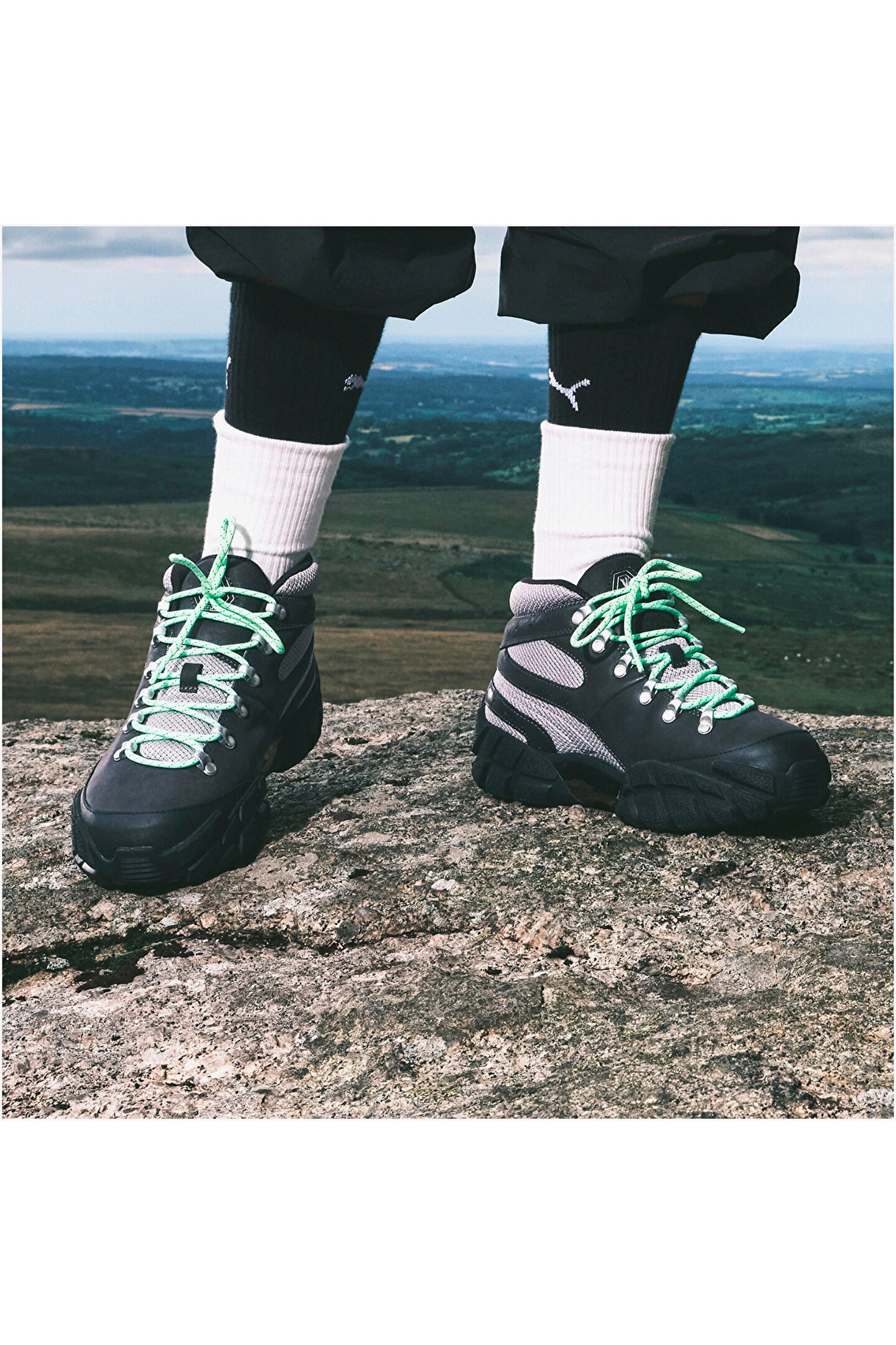 PUMA reunites with legendary grime artist, DJ, fashion designer, and all-round creative Skepta to introduce a brand-new iteration of the Skope Mid. Crafted with a leather upper and outdoor-inspired hook detailing on the laces, this edition of the PUMA x Skepta Skope Mid brings style and functionality together through a durable rubber outsole and signature co-branding on the tongue label and heel counter.