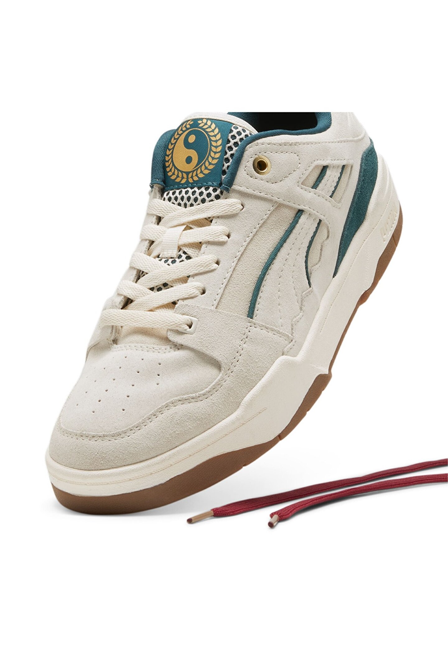 393545_01-ÜRÜN HİKAYESİ Yeni PUMA x STAPLE koleksiyonuyla, 1969'da Kaliforniya'da başlayan ve medeni haklar hareketinde Asyalı Amerikalıların sesi haline gelen gazete Gidra'nın hikayesine devam ediyoruz. ; Ivy League stiliyle harmanlanmış 60'ların Doğu-Batı tarzı, çağdaş bir görünüm için üniversite stilini Asya ikonografisiyle birleştiren koleksiyona ilham veriyor. ; SLIPSTREAM'in bu versiyonu temayı ele alıyor. ; ÖZELLİKLER & FAYDALAR PUMA'nın deri ürünleri, Leather Working Group aracılığıyla sorumlu üretimi destekler. ; DETAYLAR Ortak markalı dil etiketi Üst kısımda süet Dil üzerinde file;