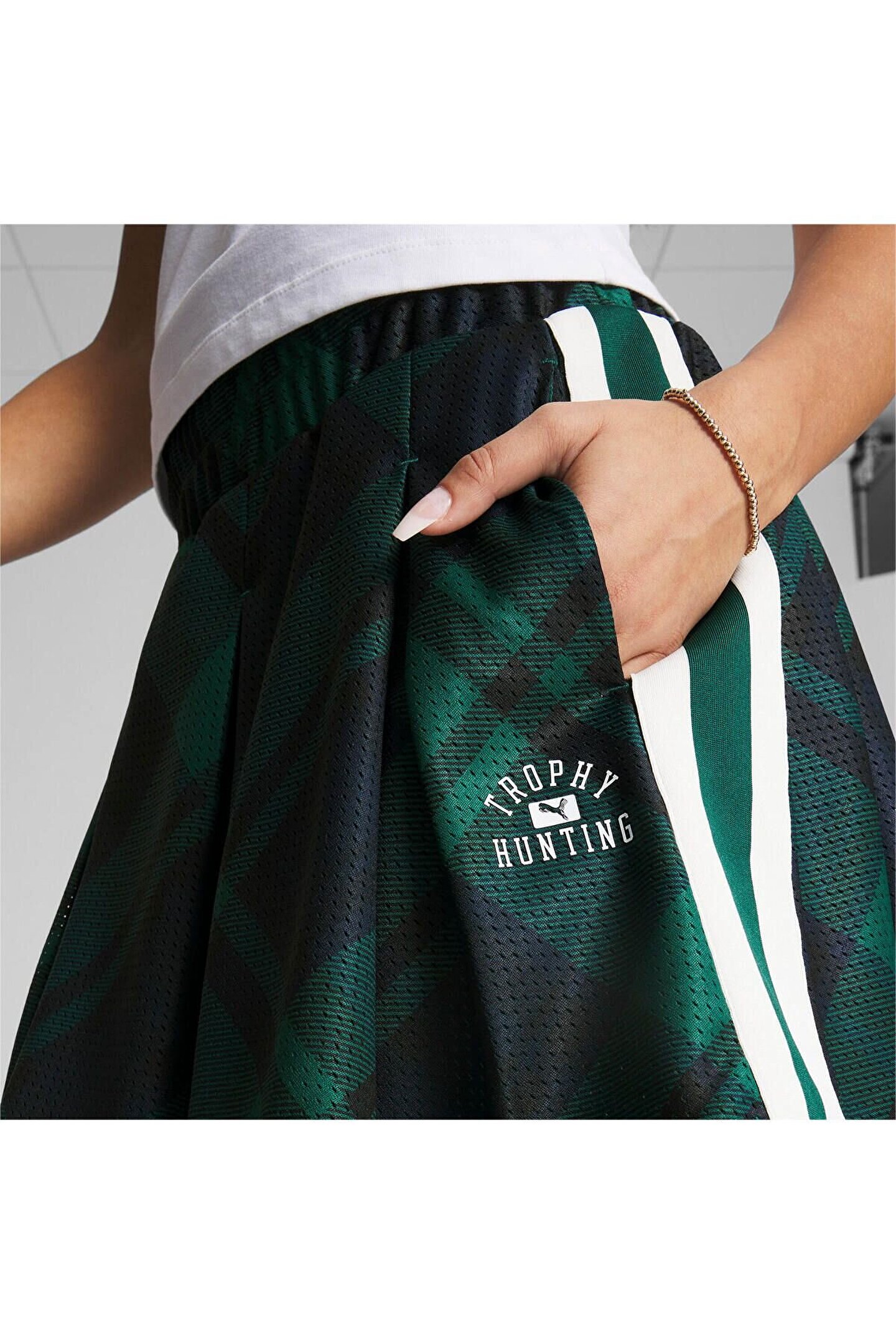 623242_01-ÜRÜN HİKAYESİ PUMA x TROPHY HUNTING koleksiyonu, klasik Amerikan stilinin PUMA'nın çağdaş spor giyimiyle birleştirerek zanaate ve işlevselliğe vurgu yapan ve kadın basketbolunu hem sahada hem de saha dışında destekleyen zamana meydan okuyan giysiler sunuyor.; ÖZELLİKLER & FAYDALAR Daha iyi bir geleceğe doğru bir adım olarak süslemeler hariç %100 geri dönüştürülmüş malzemeden üretilmiştir DETAYLAR Standart kesim Yüksek bel Ayarlanabilirlik ve rahatlık için bel bandında kordonlar Trophy Hunting markası