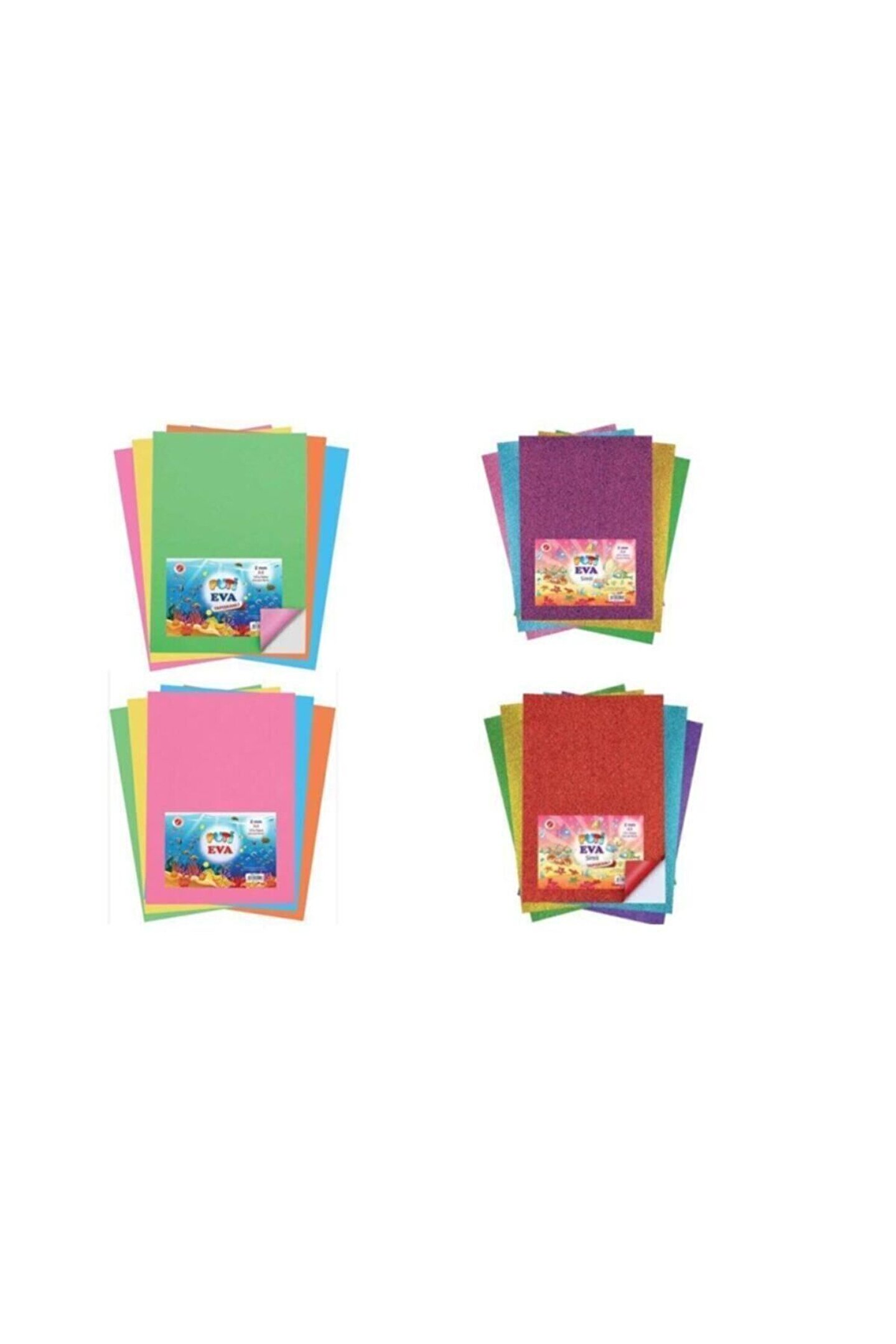 Paket içeriği; -Düz eva 10 renk 20x30cm -Yapışkanlı eva 10 renk 20x30cm -Simli eva 10 renk 20x30cm -Simli yapışkanlı 10 renk 20x30cm;
