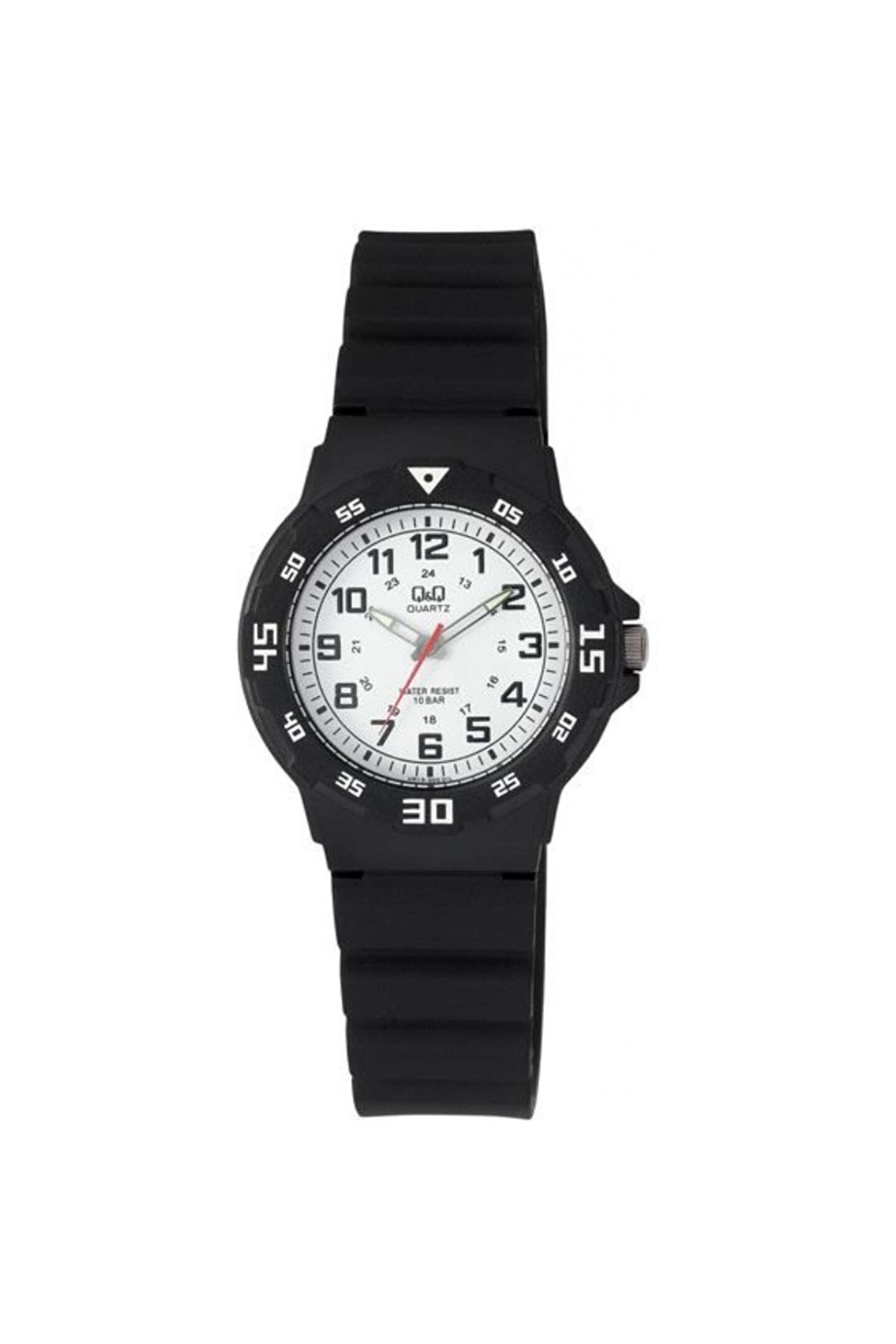Q&Q VR19J003Y Kadın Kol SaatiQ&Q VR19J003Y Kadın Kol Saati Teknik Özellikleri;Kadran Şekli: Yuvarlak ;Kasa Tipi: Çelik ;Kordon Tipi: Plastik / Silikon ;Suya Dayanıklılığı: 50 Mt Üzeri;Alarm: Yok;Takvim: Yok;Kordon Rengi: Siyah;Cam Malzemesi: Mineral;Çap: 32 mm;Kadran Rengi: Beyaz;Kronometre: Yok;Mekanizma / Ekran Tipi: Analog;Kasa Rengi: Siyah