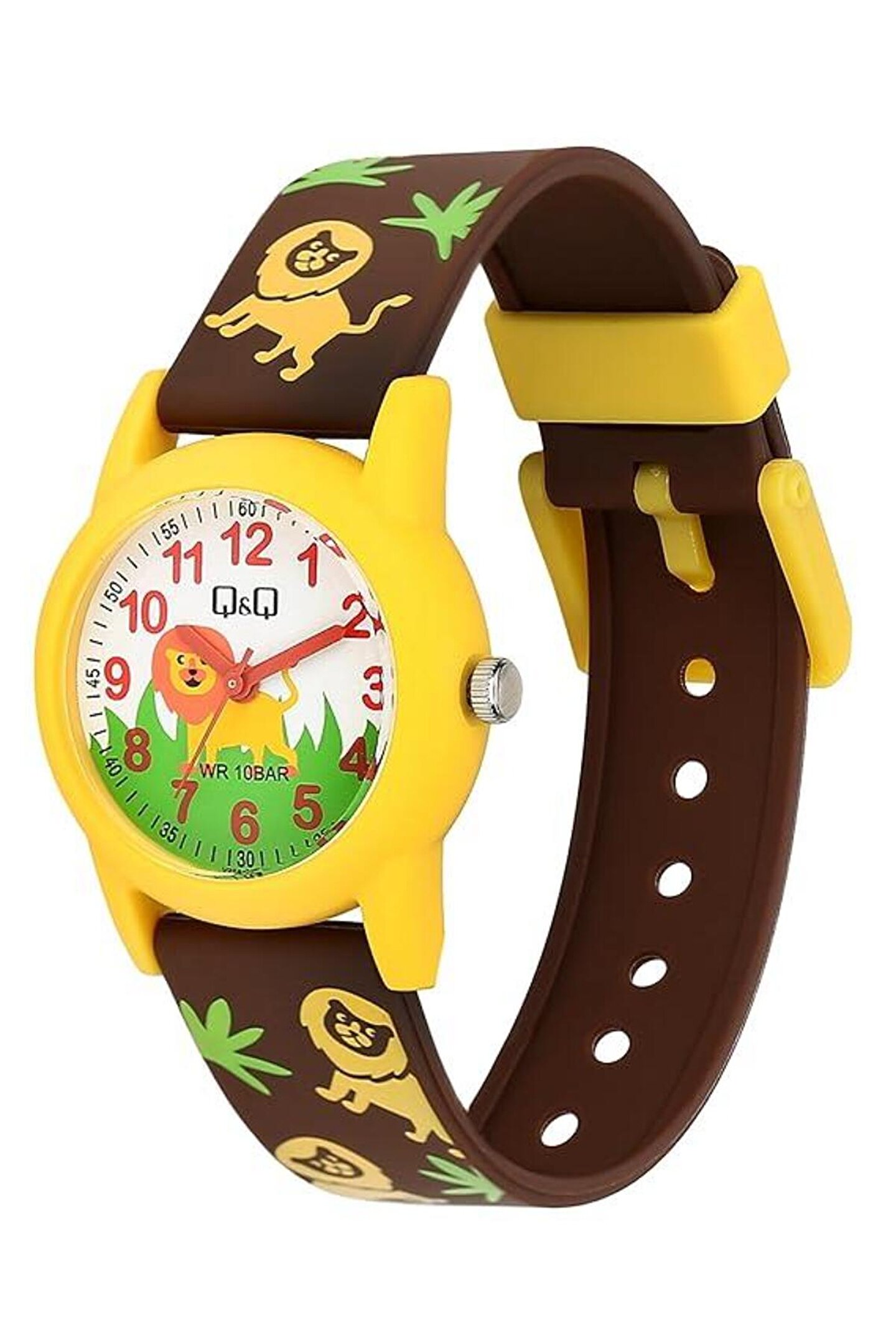 Sitemizde bulunan tüm Q&Q Ürün Modelleri Resmi Distribütör güvencesi altındadır; Alacağınız bu ürün 2 yıl garanti kapsamındadır; Siparişiniz orijinal garanti belgesi, faturası ve kutusu ile anlaşmalı kargo firması tarafından adresinize ücretsiz teslim edilecektir; ÜRÜN BİLGİSİ KASA YAPISI KADRAN YAPISI KORDON YAPISI ÖZELLİKLER Cinsiyet:Çocuk Marka:Q&Q Çalışma Tipi:Pilli Garanti:2 Yıl Kasa Çapı:30 mm Kasa Şekli:Yuvarlak Kasa Materyali:Plastik Kasa Taşı:Yok Kasa Rengi:Sarı Kadran Tipi:Analog Kadran Rengi:Beyaz Kadran Taşı:Yok Kordon Tipi:Silikon Kordon Rengi:Kahverengi Su Geçirmezlik:10 ATM Kronometre:Yok Takvim:Yok Cam:Mineral Alarm:Yok;