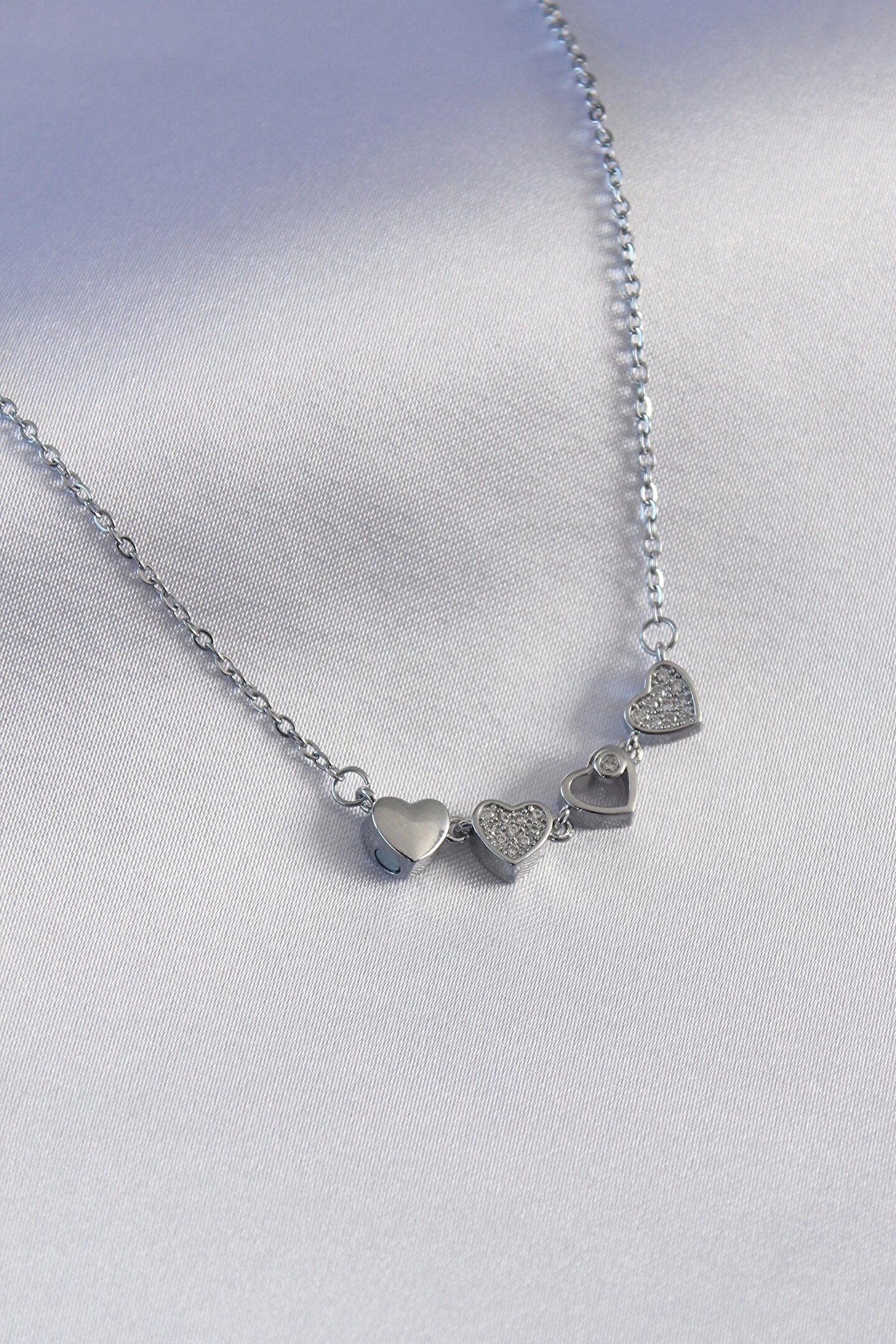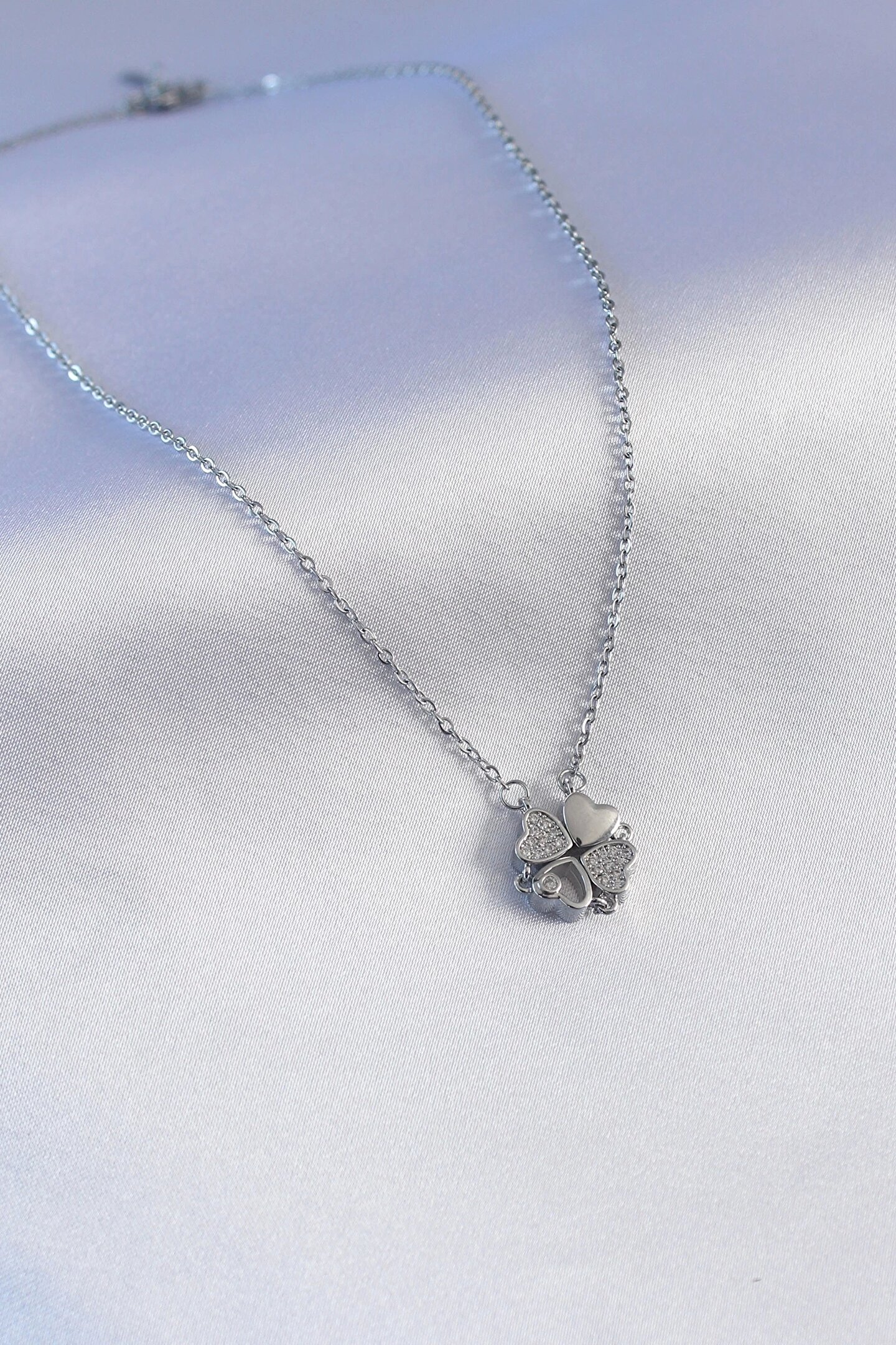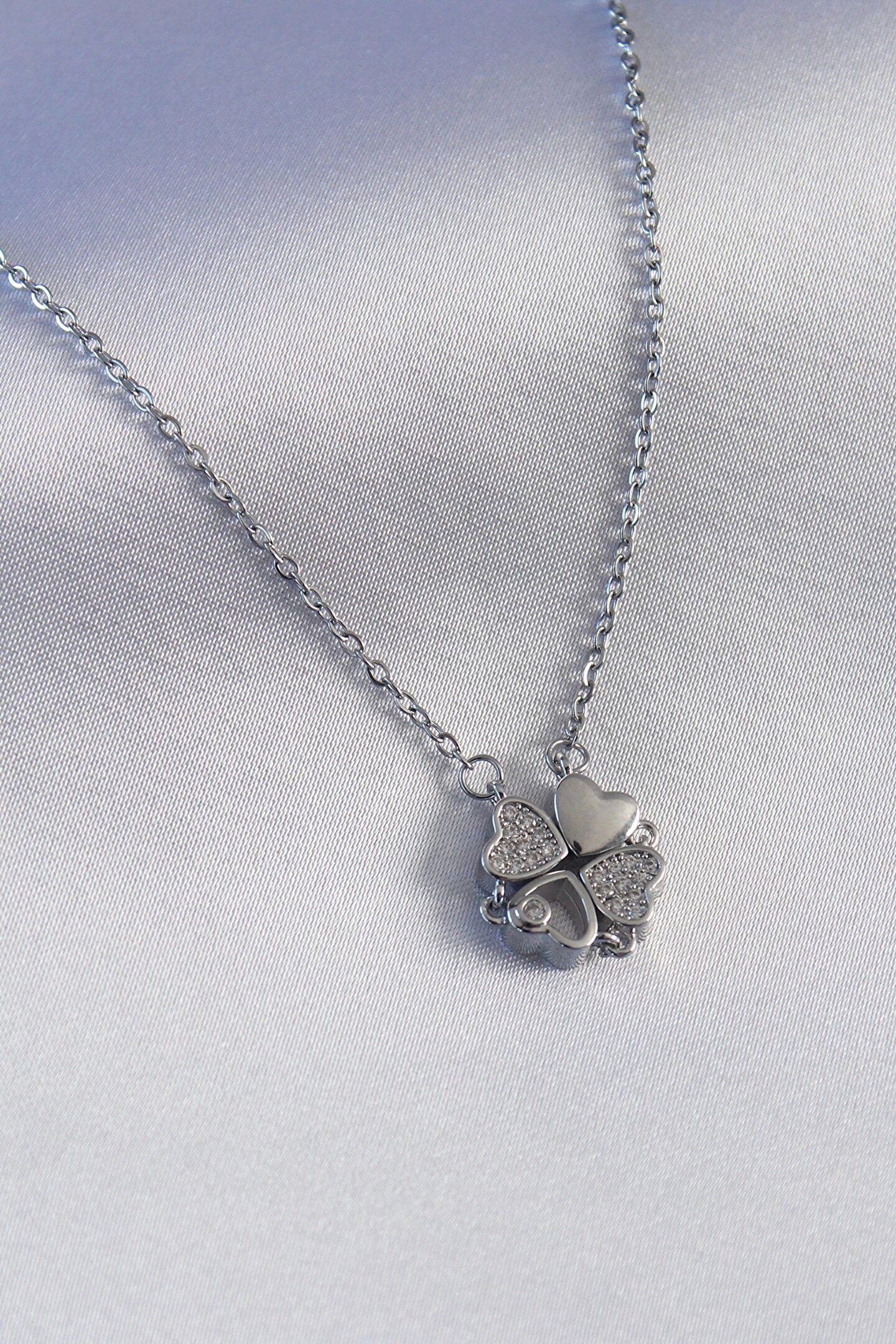 Raybago 316L Çelik Gümüş Renk Açılır Zirkon Taşlı Yonca Model Kadın Kolye