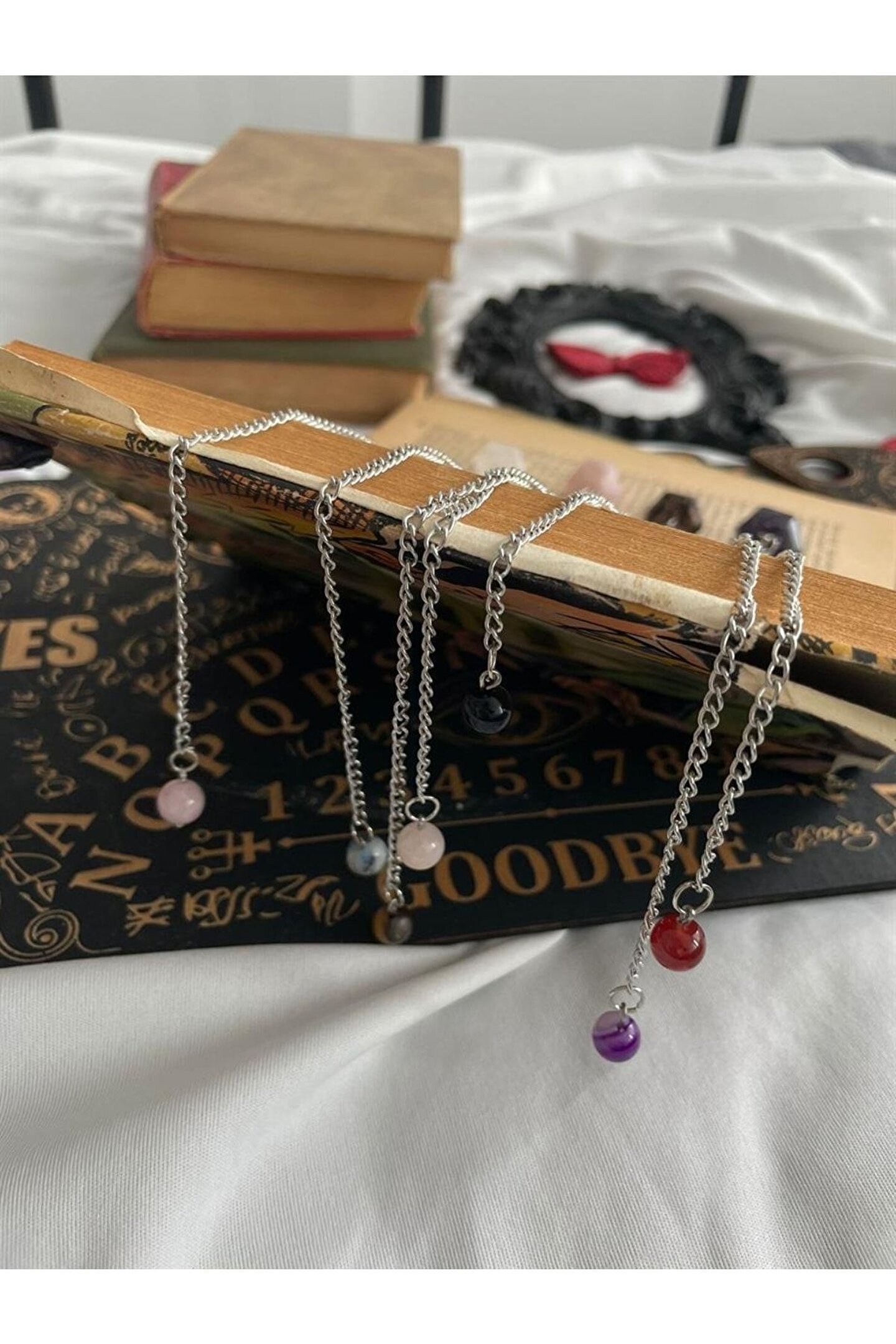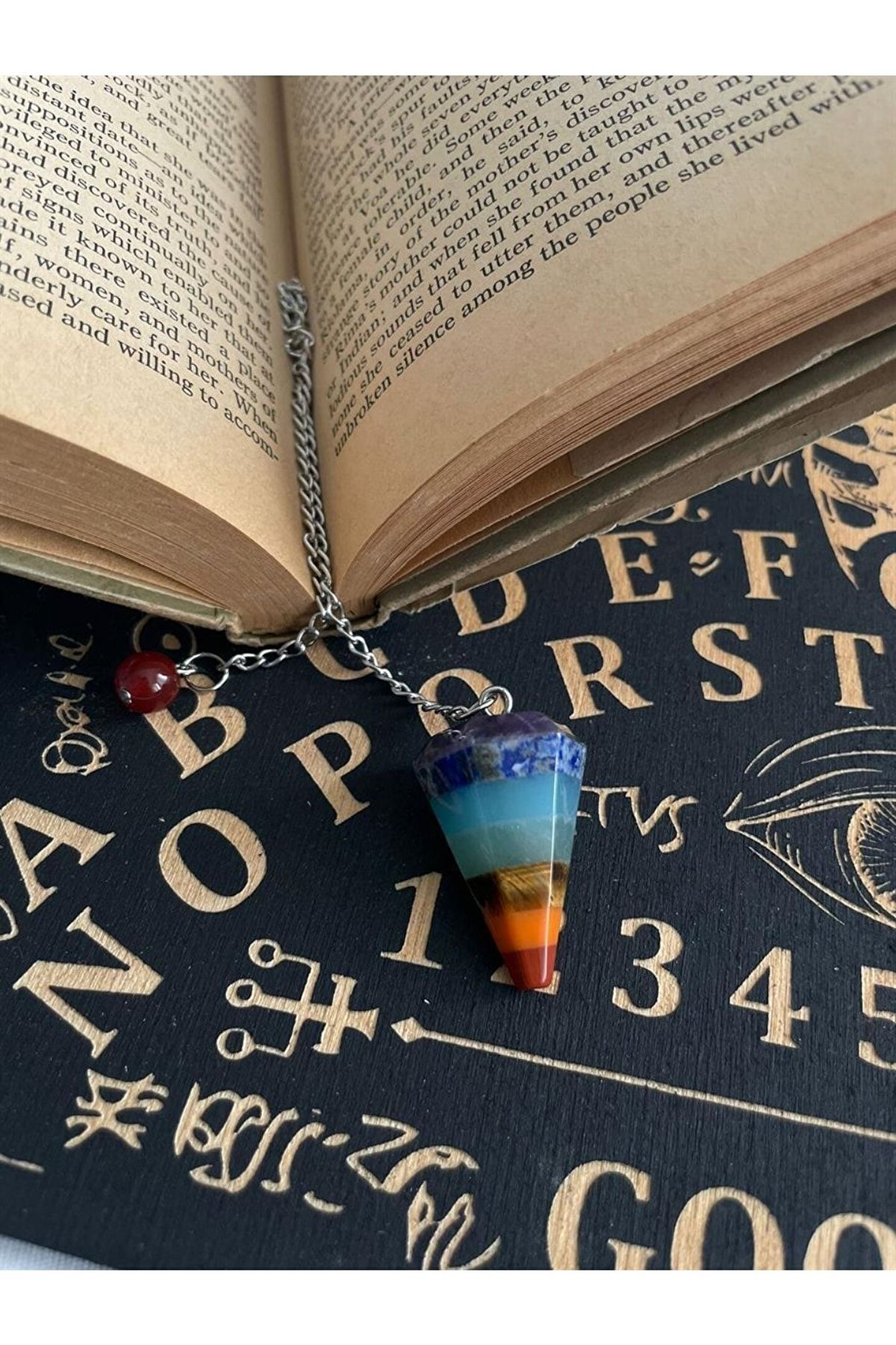Doğal taş kullanımı sayesinde her bir pandül, benzersiz ve otantik bir görünüm sunar; 7 çakra enerjisini dengelemek için tasarlanmış bu kolye, kişisel şifa ve meditasyon ritüellerinizde size eşlik eder; Taş materyali ile hem estetik hem de doğallığı bir arada sunarak, günlük kullanım için idealdir; Her bir pandülün zarif sallanışı, enerji dengenizi korumanıza yardımcı olurken aynı zamanda stilinizi de tamamlar;