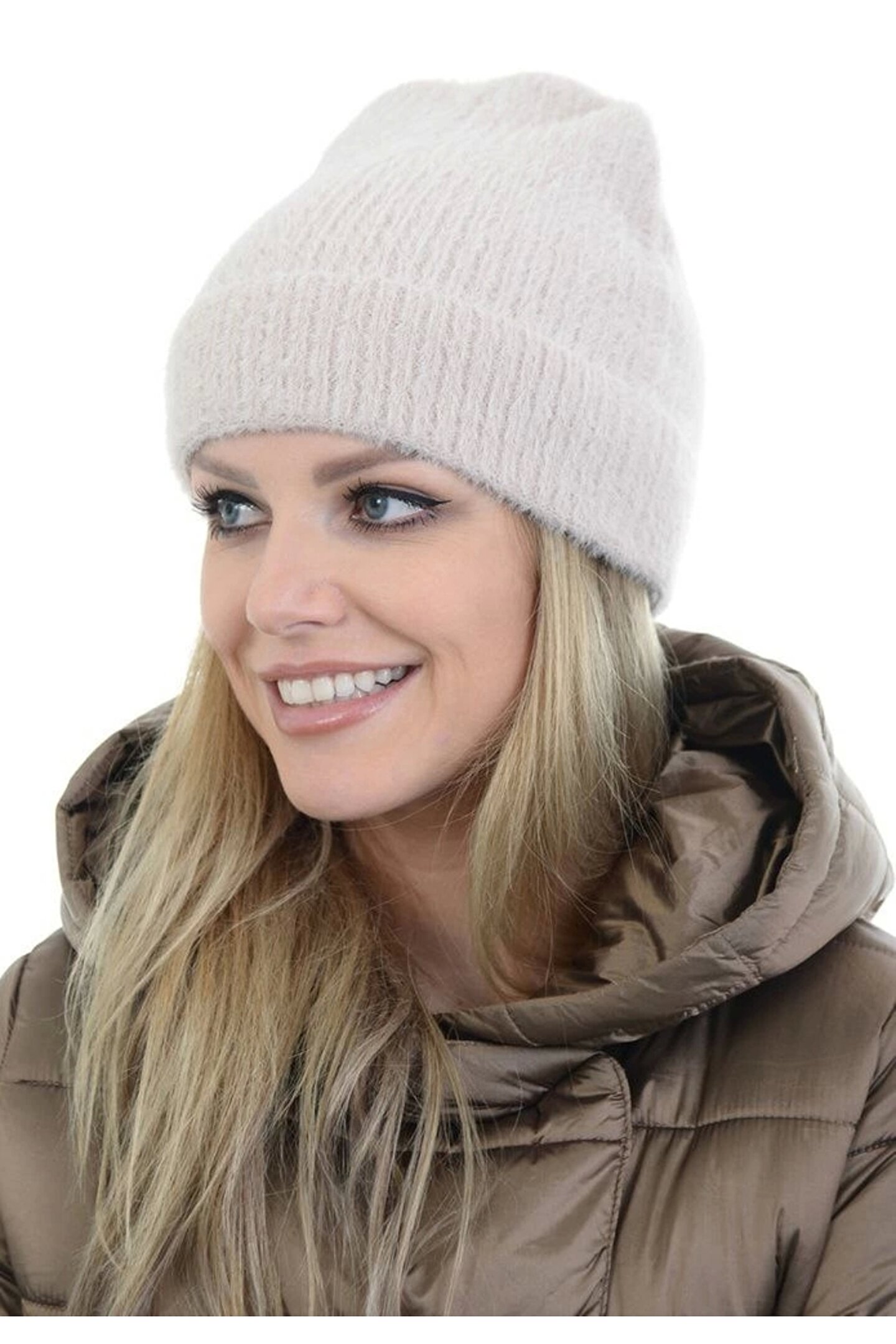 Unisex Tam Kalıp İnce Sakallı Triko Bere - Kırık Beyaz
