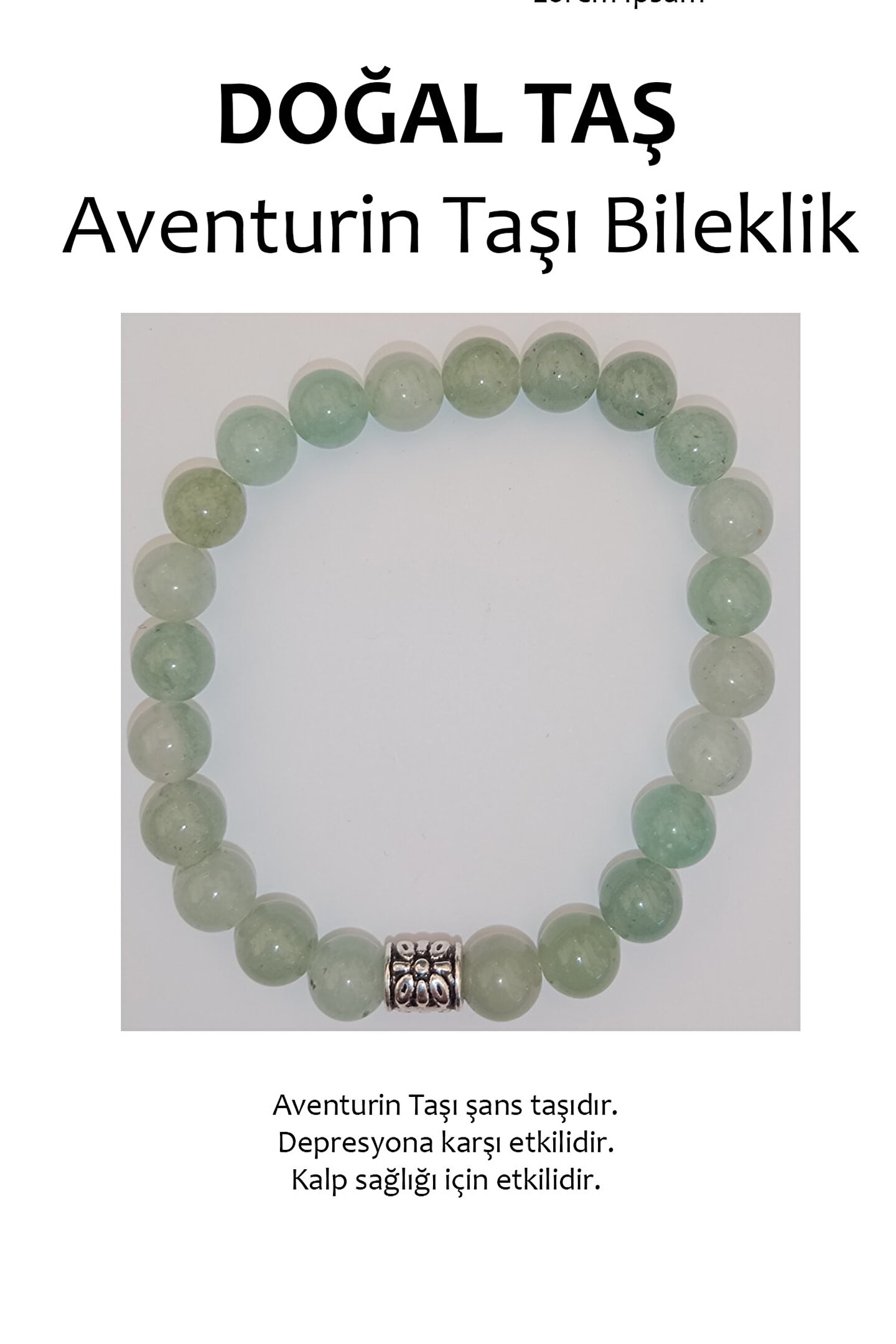 Aventurin taşı, doğal taş kategorisinde yer alan ve benzersiz bir görünüm sunan bir bileklik modelidir; Doğal taş materyali sayesinde, her bileklik benzersiz ve eşsiz bir dokunuşla öne çıkar; Aventurin taşı, şıklığı ve zarafetiyle dikkat çekerken, aynı zamanda enerji taşı olarak da bilinir ve pozitif enerjilerle dolu bir aksesuar deneyimi sunar; Doğal taş bileklik, hem günlük kullanım hem de özel günlerde tercih edilebilecek ideal bir aksesuardır;