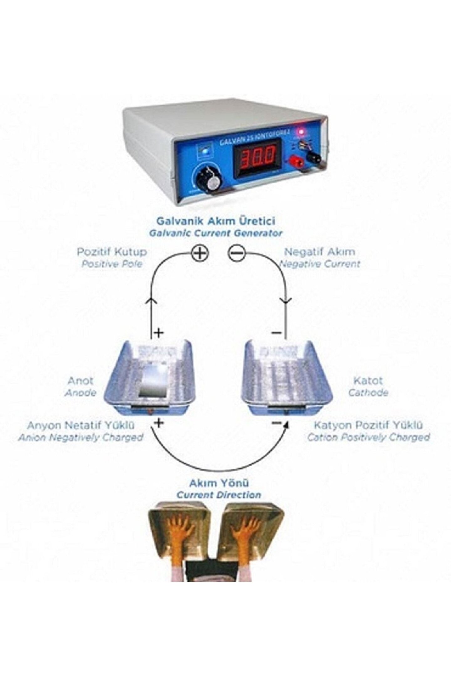 Galvan 25 İyontoforez Cihazı Aşırı el ve ayak terlemelerini önleyen cihaz Maksimum çıkış akımı 30 miliamper Çeşme suyu ile tedavi yapılır Çıkış akımı dijital ekrandan izlenebilir Uygulamada ayak pedalı istenirse kullanılabilir Koltuk altı uygulaması için elektrot Acısız ve zararsız tedavi Akım koruma sistemi ile güvenli tedavi İyontoforez cihazımız ile 21 gün tedavi olun ve 1 yıl aşırı el ayak terlemesinden kurtulun. ; Binlerce mutlu müşterimiz iyontoforez cihazımızı kullanarak evinde tedavi oldu. ; Tamamen güvenli olan iyontoforez cihazımız ile kendi kendinize aşırı el ve ayak terlemesinden kurtulmanın keyfini yaşayın. ; İyontoforez acısız ve zararsız bir tedavi yöntemidir. ; Tedavi hakkında teknik bilgi almak için İyontoforez Cihazı Teknik Özellikleri Çıkış akımı 30 miliamper Kanal sayısı 1 kanal Akım Tipi Doğru akım / Galvanik akım Polarite Polarite akım düğmesi vardır Su Kabı Plastik ikili üstteki delikli 30cm x 20cm x 8cm Elektrot Paslanmaz çelik Koltuk altı elektrotu Karbon slikon ve sünger Cihazın yanında gelen aksesuarlar Elektrod 2 adet Paslanmaz çelik 2 adet Flaster bandaj 1 adet Koltuk altı cep sünger 2 adet Su Kabı 2 adet Ayak pedalı 1 adet;