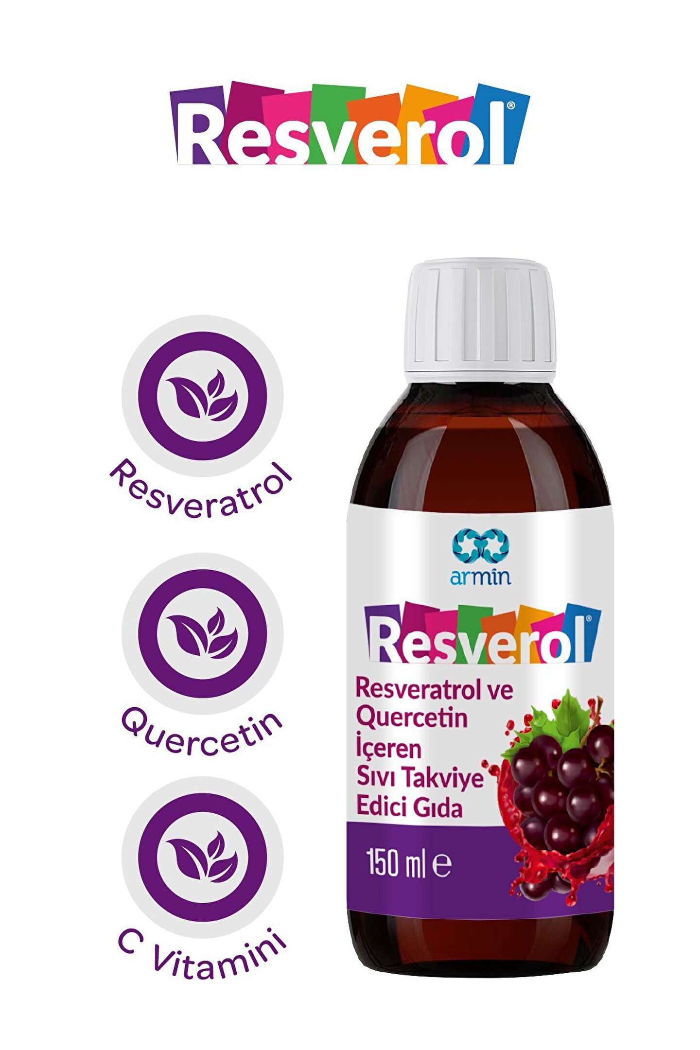 Armin Resverol 150ML Resveratrol ve Quercetin İçeren Takviye Edici Gıda Koruyucu İçermez.;