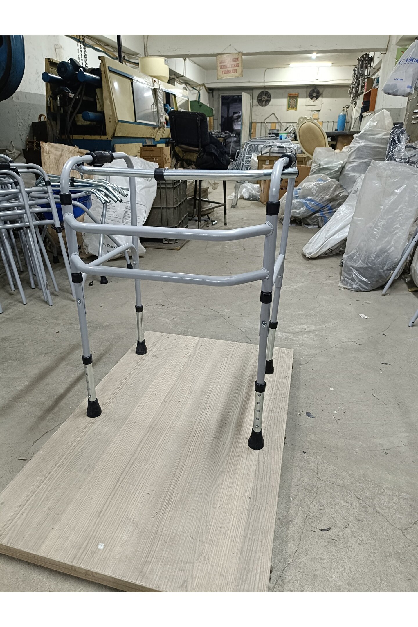 Hareketli yürüteç walker Yaşlı, yürüme güçlüğü çeken,ayak felci geçirmiş olan hastalar ve fizik tedavisi gören hastaları rehabilite etmek için kullanılan bir yürüteçtir. ; Tamamen metal borudan üretilmiş olup oldukça hafif ve kullanışlıdır, katlanabilir özelliktedir. ; Ayakları pimli ve geçmeli olduğu için hasta boyuna göre 5 kademeli yükseklik ayarı yapılabilir. ; Dört ayağına vakumlu kavçuk lastik takılmıştır, parke gibi hassas zeminleri çizmez zedelemez. ; Metal aksamı elektrostatik toz boya kullanılmıştır ,paslanmaz renk atmaz. ; Demir ve alüminyum malzemeden üretilmiştir sağlam yapıdadır 120kg ağırlığında hastalara kadar kolay kullanım imkanı sağlar.;